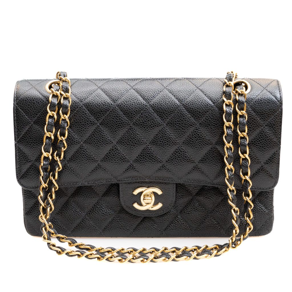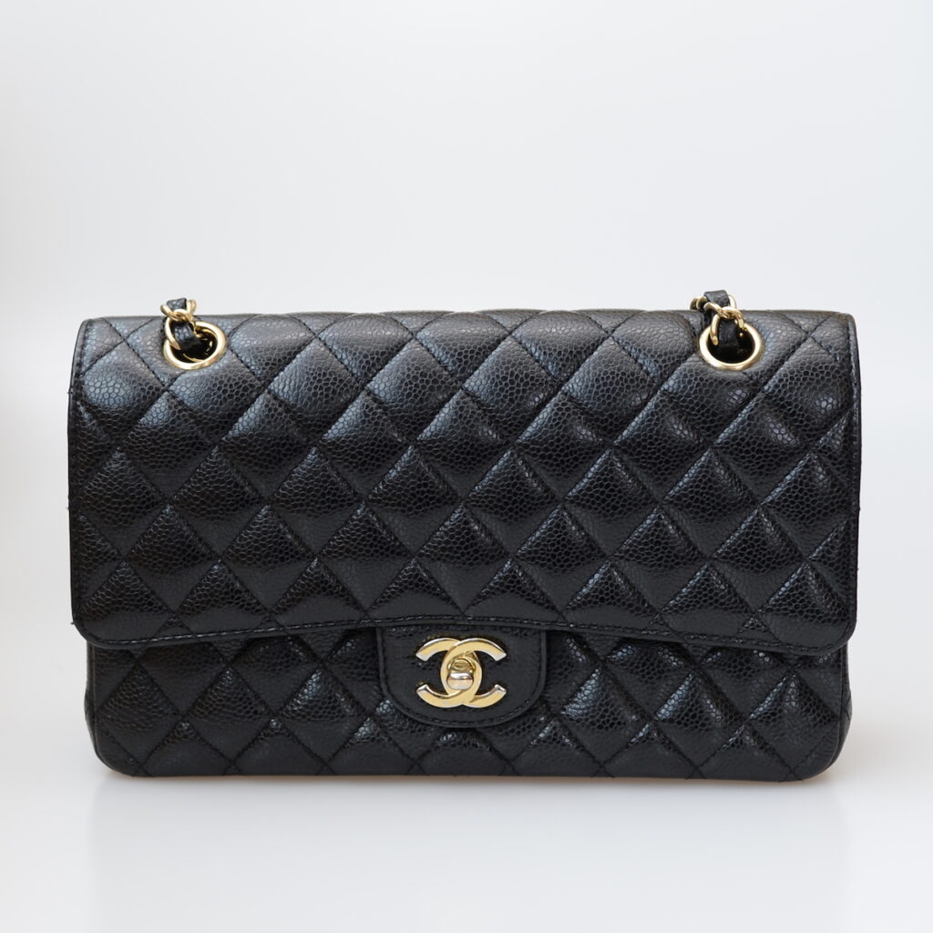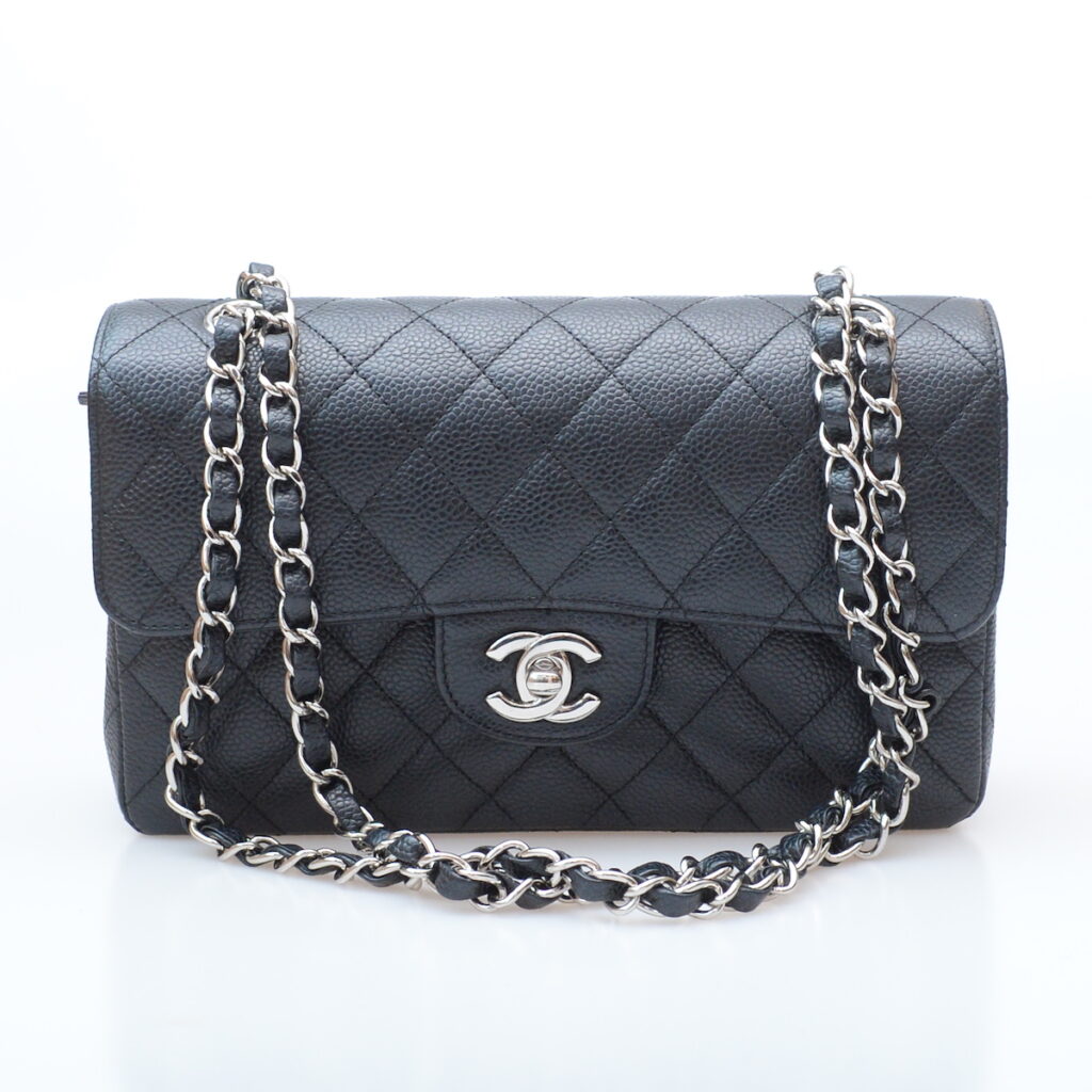 ダブルフラップ チェーンショルダー25(ブラック・キャビアスキン)