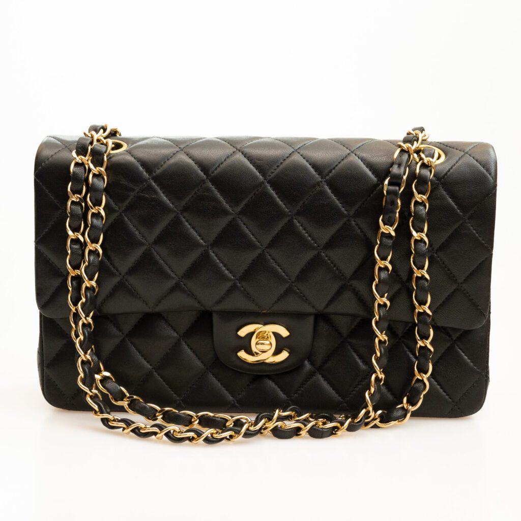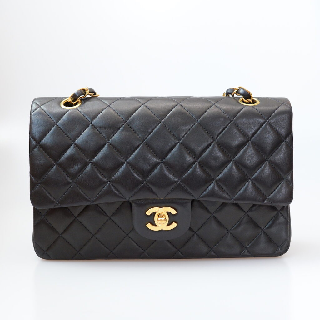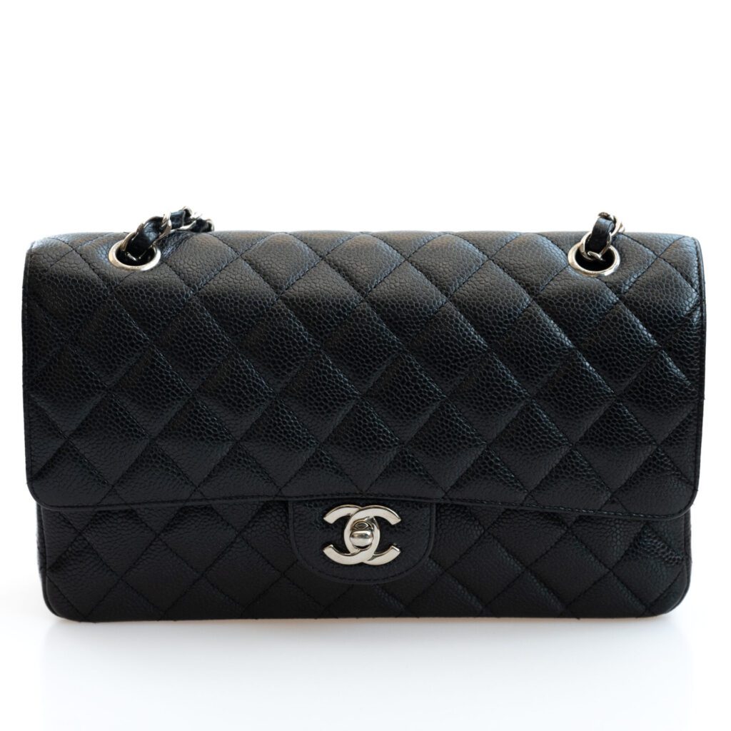 ダブルフラップ チェーンショルダー25(ブラック・キャビアスキン)
