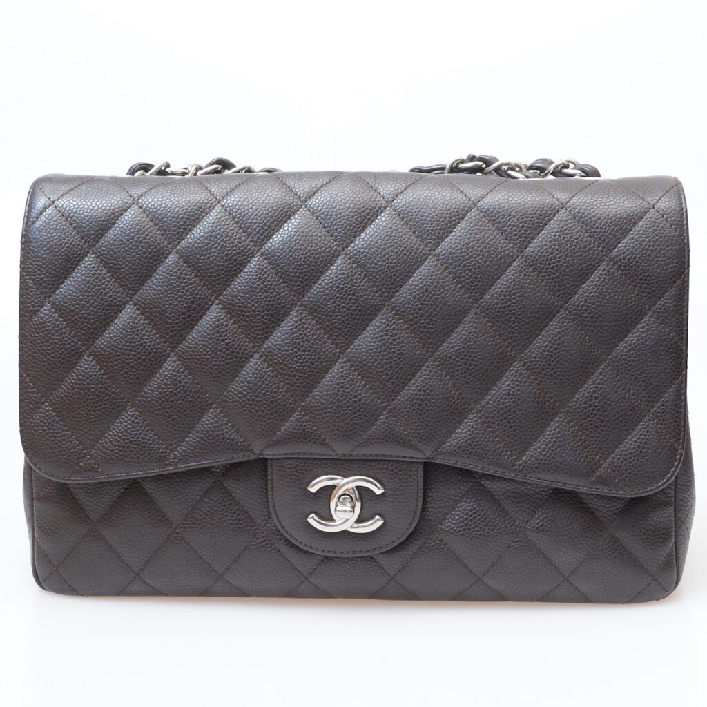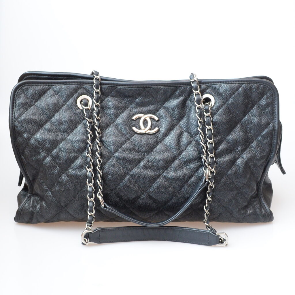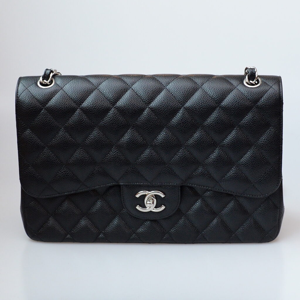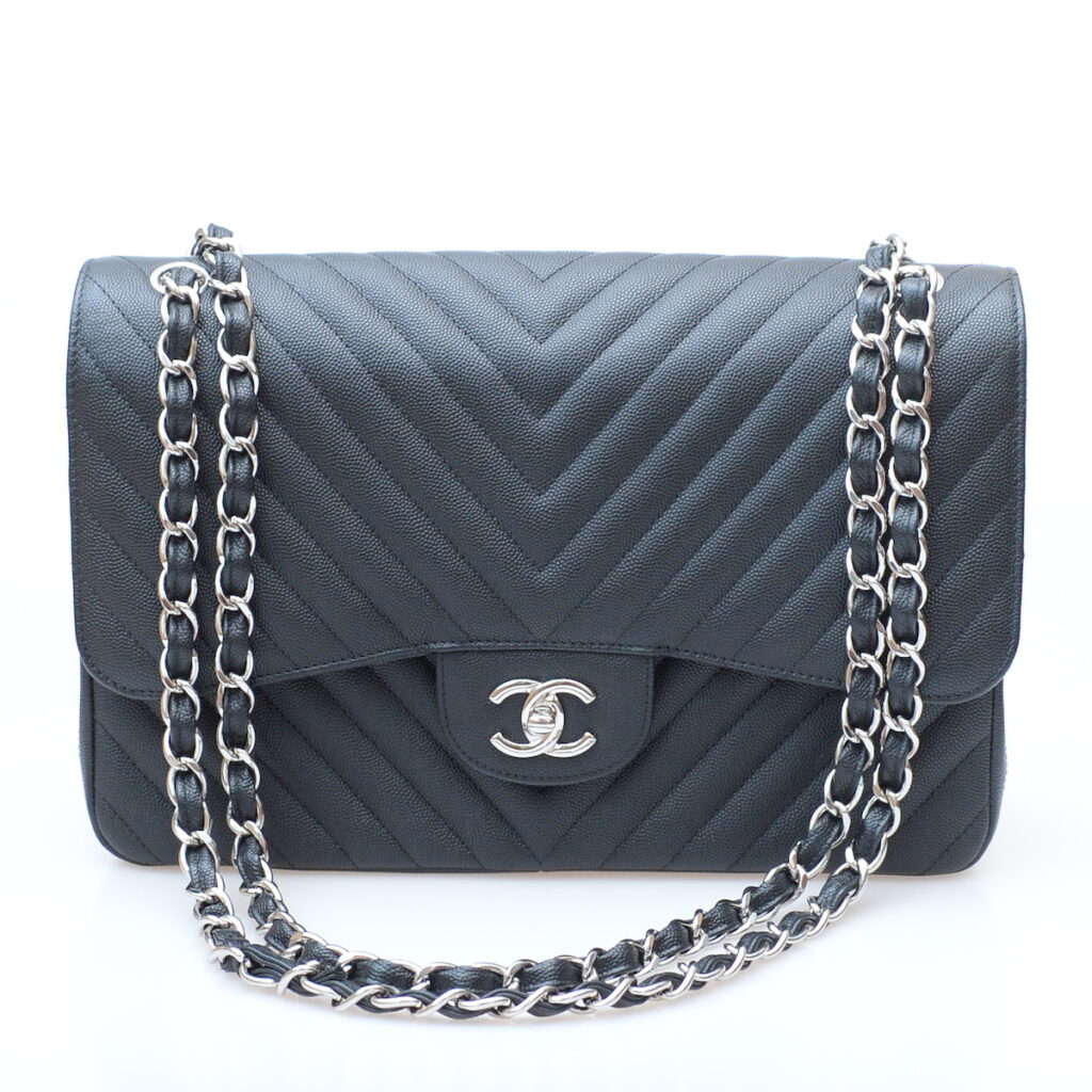 ダブルフラップ チェーンショルダー(ブラック・キャビアスキン)