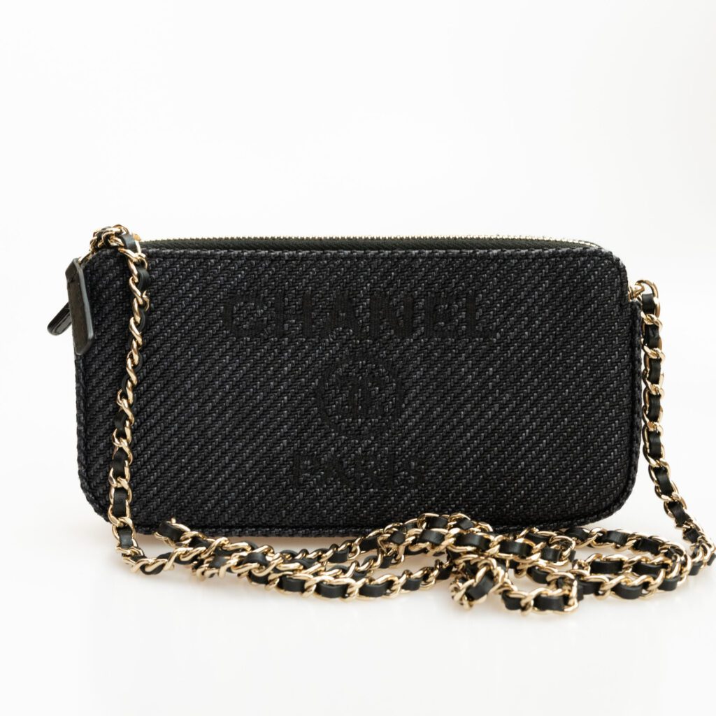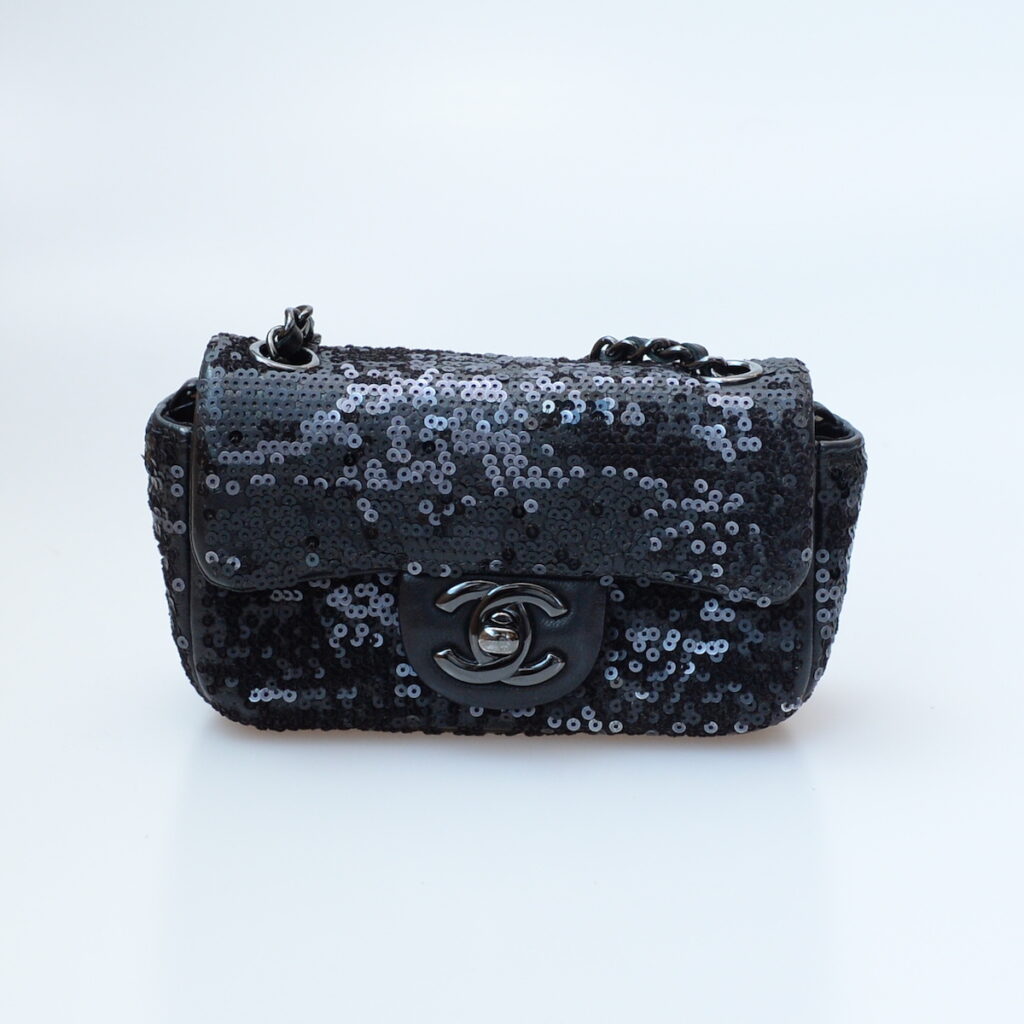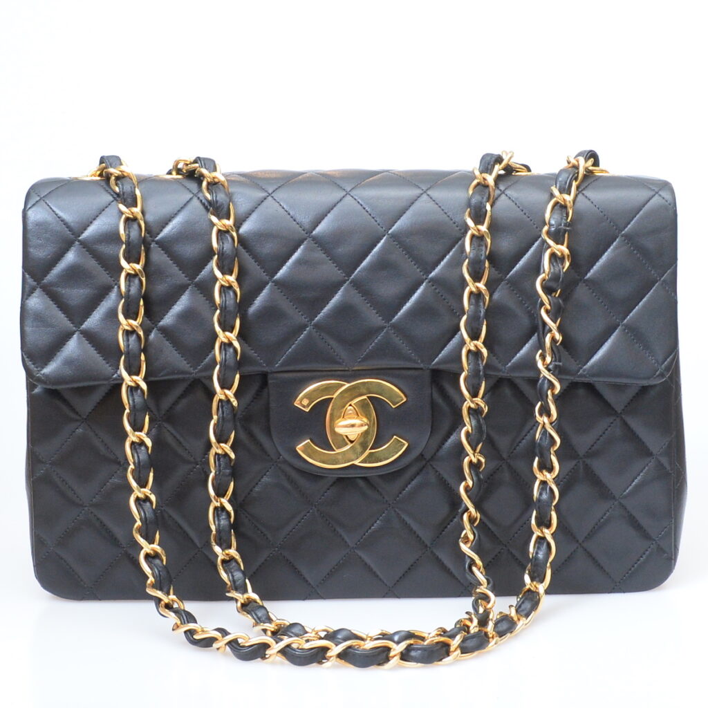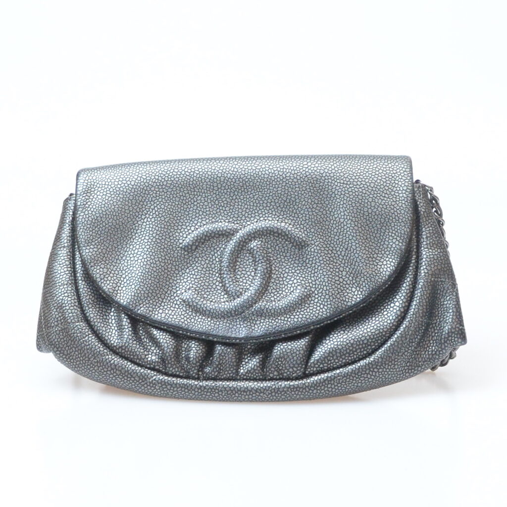 ダブルフラップ チェーンショルダー(ブラック・キャビアスキン)