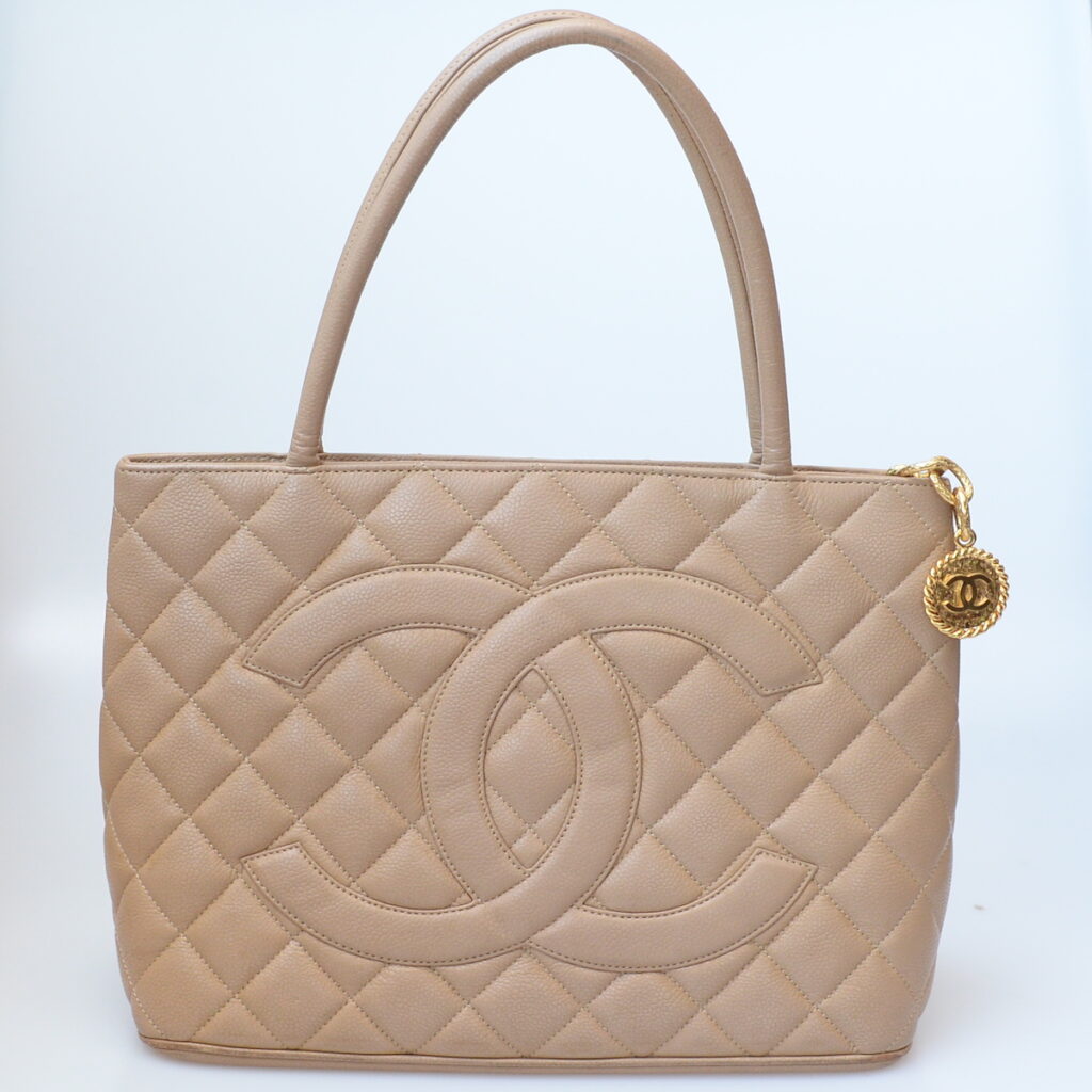 復刻トートバッグ(ベージュ・キャビアスキン)