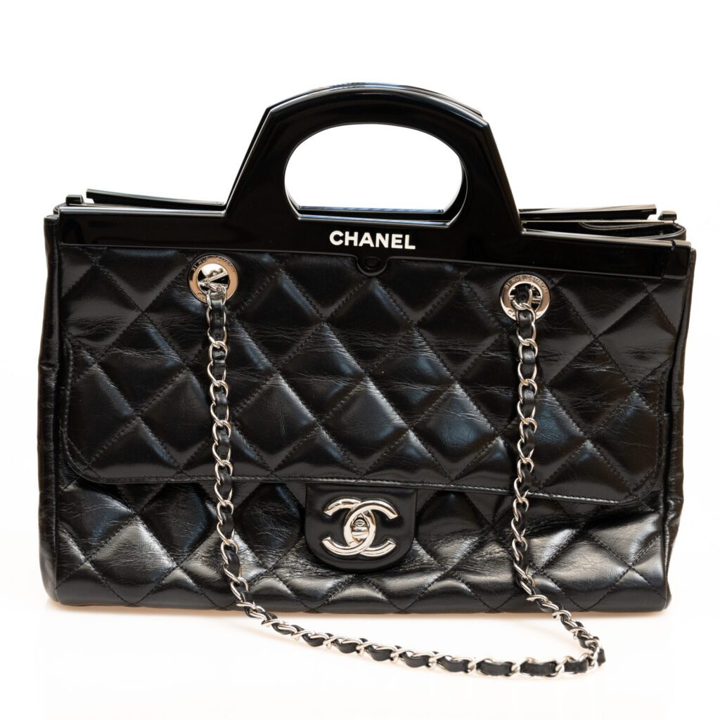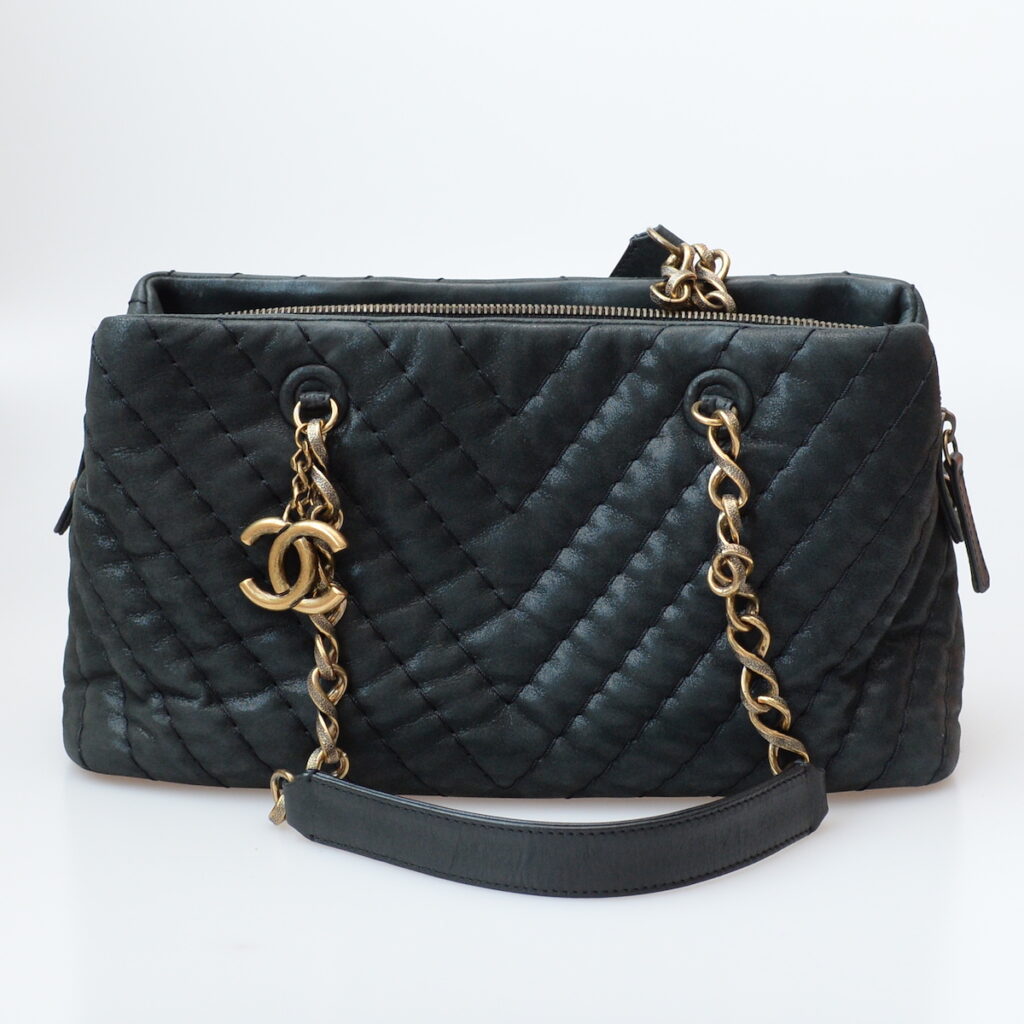シャネルトップハンドル2wayバッグ(ネイビー・ラムスキン)