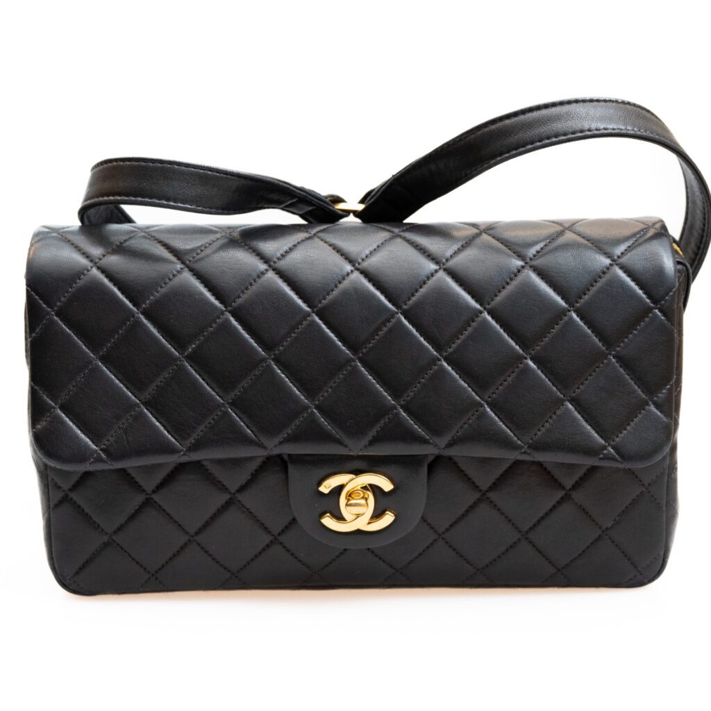 ダブルフラップ チェーンショルダー (ブラック・キャビアスキン)