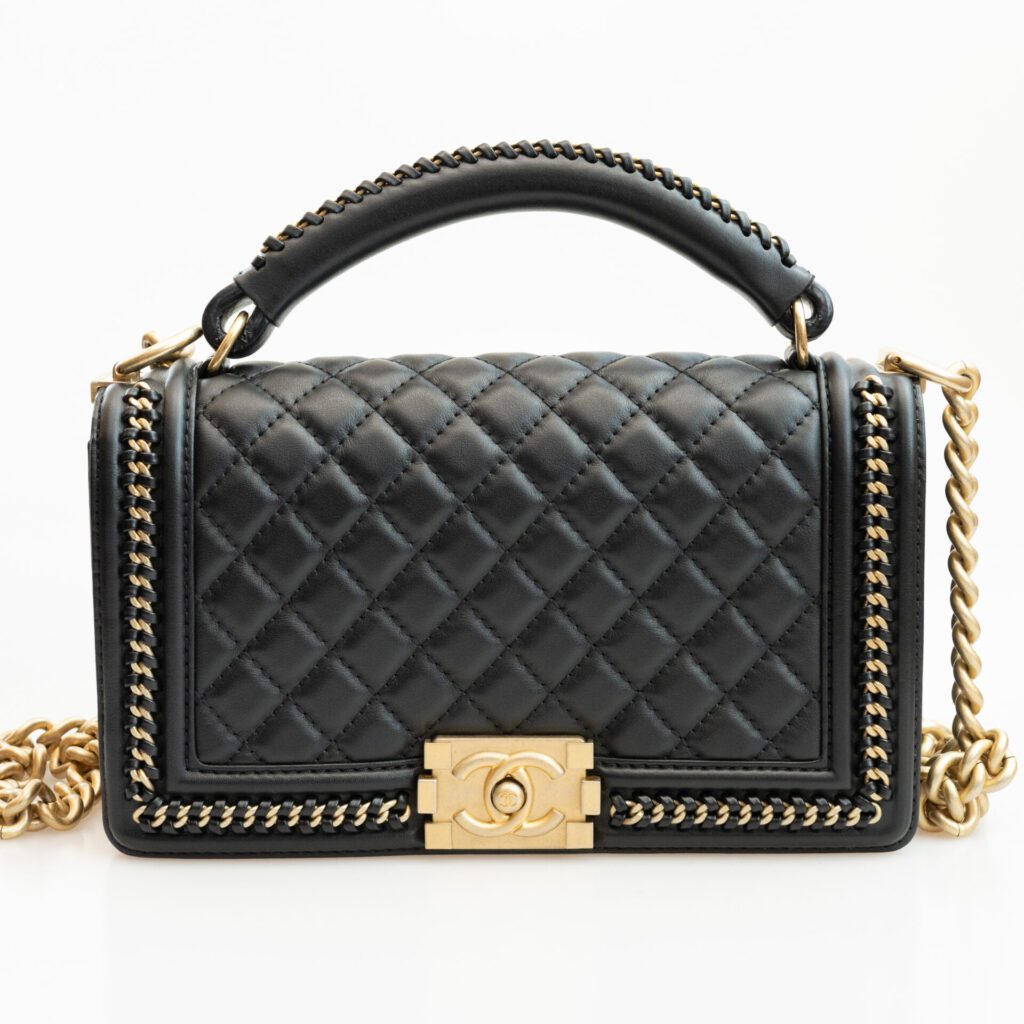 マトラッセ チェーンショルダー25 (ブラック・ラムスキン)