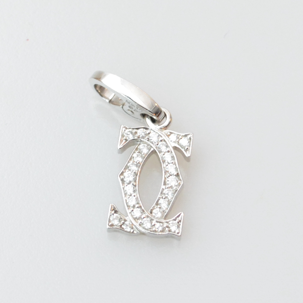 カルティエの2Cチャームをお買取させていただきました。定番のトップの一つでカルティエのロゴをモチーフとしたこのモデルは中古市場でも需要が高い品物です。同じモデルでもイエローゴールドの方がやや相場が高い傾向にありましたが、今年に入ってから金相場が大幅に高騰したこともあり、あまり金額の差もなくなってきて全体的に買取価格も上昇している印象です。やや小傷や汚れが見られましたが、保証書がある点なども高くご評価し8万円にてお買取させていただきました。
