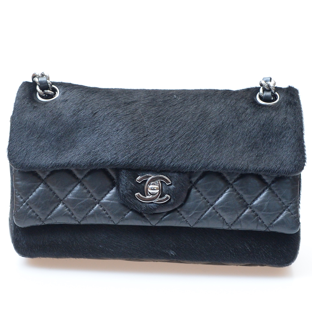 ダブルフラップ チェーンショルダー(ブラック・ラムスキン×ファー)