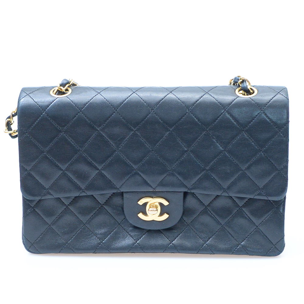 ダブルフラップ チェーンショルダー25(ブラック・ラムスキン)