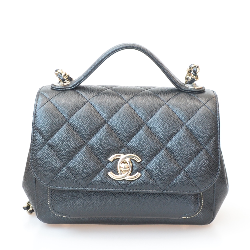 シャネルの2WAYトップハンドルバッグをお買取させていただきました。数年前より展開されているモデルで、数は少ないですが現行品としても販売され続けている定番品となりつつあるモデルです。ミディアムサイズとスモールサイズでの展開がありますが、今回ご依頼いただいたお品物はスモールサイズとなります。人気に関してはほぼほぼ変わらない傾向にあるものの、定価が安いスモールサイズの方がやや高値が付きやすい傾向にあります。ブラックでキャビアスキンの品物は中古市場では特に需要が高い定番アイテムとなりますので、状態等を考慮し34万円にてお買取させていただきました。