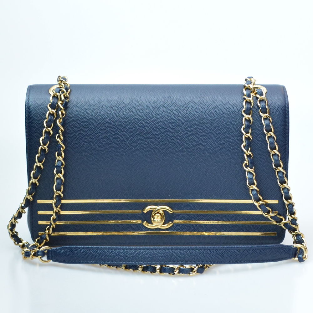 フルフラップチェーンショルダー(ネイビー・キャビアスキン)