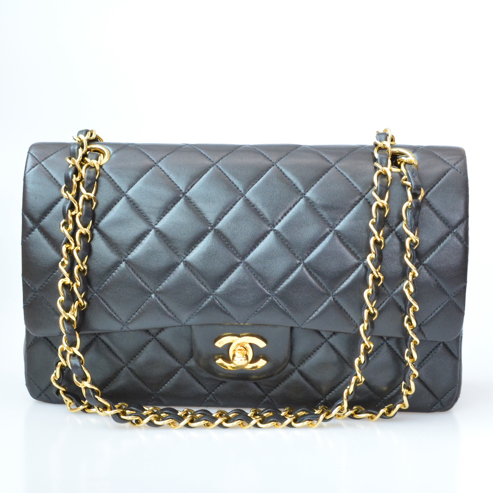 シャネルのマトラッセ ダブルフラップ チェーンショルダーの25cmタイプはヴィンテージシャネルを代表する定番モデルです。現在でも「クラシックフラップバッグ」としてブティックで販売されているロングセラーモデルとも言えます。30年ほど前からほとんど形を変えずに販売されているこのモデルは、シャネルの中でもっとも資産価値が高いバッグとも言えるかと思います。また、ヴィンテージシャネルのブームと共にじわじわと買取相場も高騰していて、現在ではヴィンテージ品でも最大40万円前後での買取が可能となっています。シャネルには数多くの希少なバッグがありますが、もっとも定番と言えるこのモデルがシャネルの相場水準の指標にもなっています。