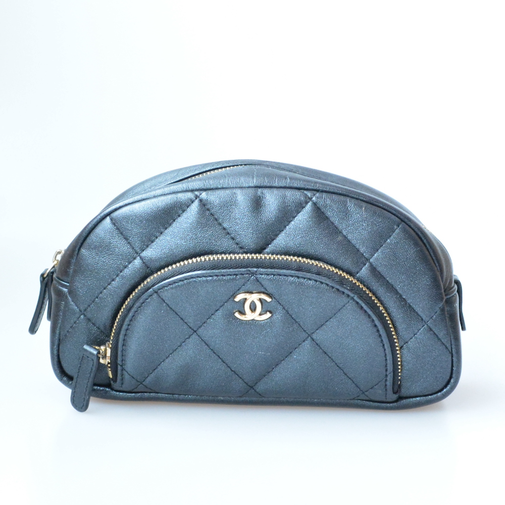 シャネルのコスメポーチをお買取させていただきました。シャネルのコスメポーチはハイブランドの中でも非常に人気が高い一方で、中古市場の流通数はかなり少ない傾向にあります。ヴィンテージ品のポーチはある程度流通していますが、比較的新しめの製造やデザインの品物はかなり少ないです。今回ご依頼いただいたお品物は定番のマトラッセラインのポーチで、かつブラックとラムスキンの組み合わせの新しめのモデルでした。外面にやや小傷等は見られましたが、内側部分が綺麗だった点を高くご評価させていただきました。コスメポーチに関しては中古品だとどうしても内側に汚れがあるケースが多く、査定においては外面と同様に内側の汚れが重要視される傾向にあります。