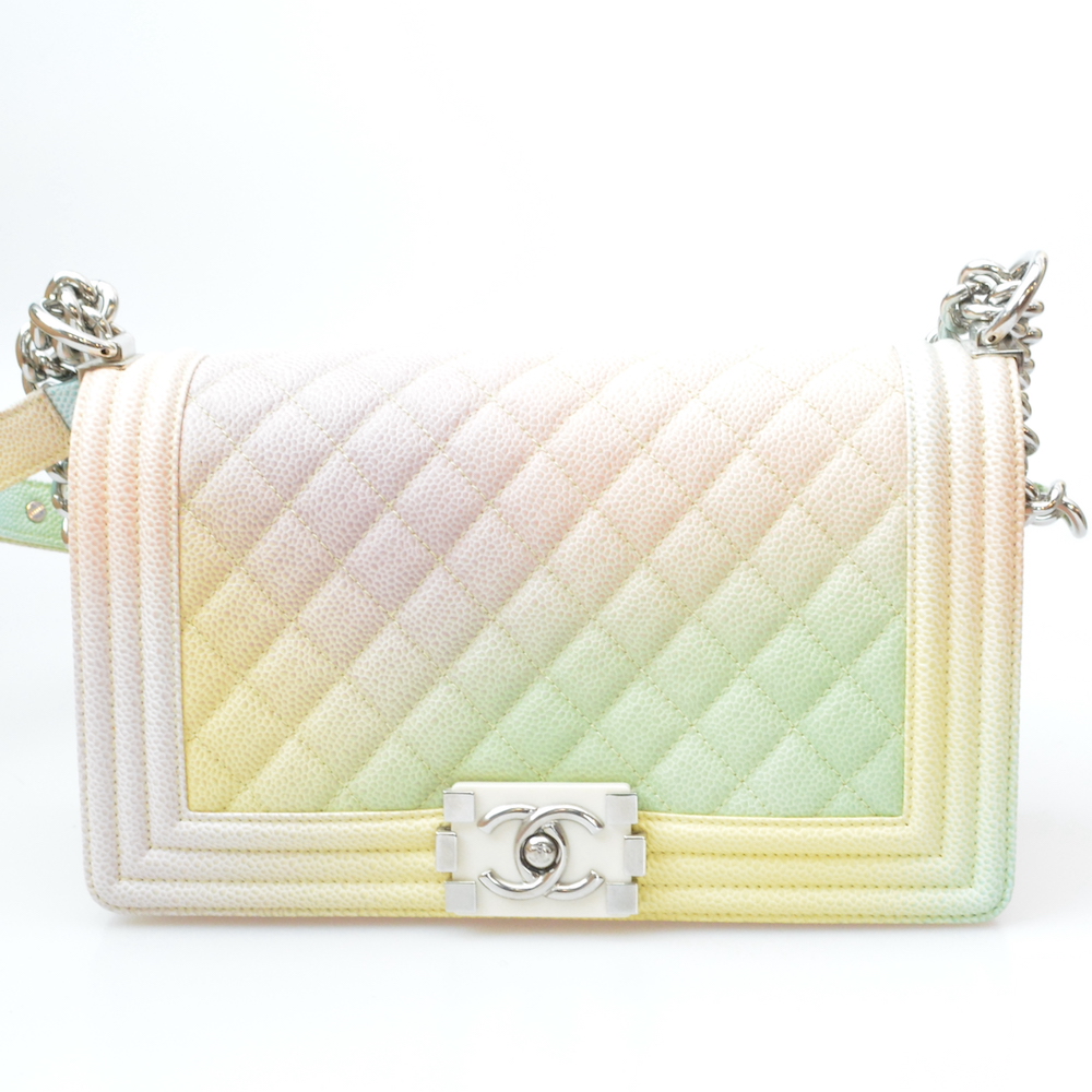 ボーイシャネルチェーンショルダー(レインボーカラー・キャビアスキン)