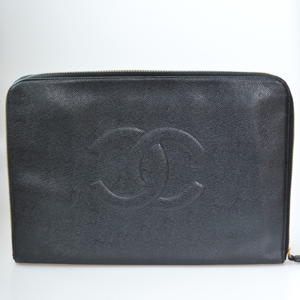 シャネルのヴィンテージのクラッチバッグをお買取させていただきました。A4サイズが入る大型のモデルで、ヴィンテージ品の中でもあまり流通していないモデルとなります。ブラックとキャビアスキンの組み合わせは人気があり、かつ正面に大きなココマークのステッチがデザインされている点なども高くご評価させていただきました。古い品物のため所々に使用感や小傷等が見られたため、状態に関してはBランクでのお査定となりました。