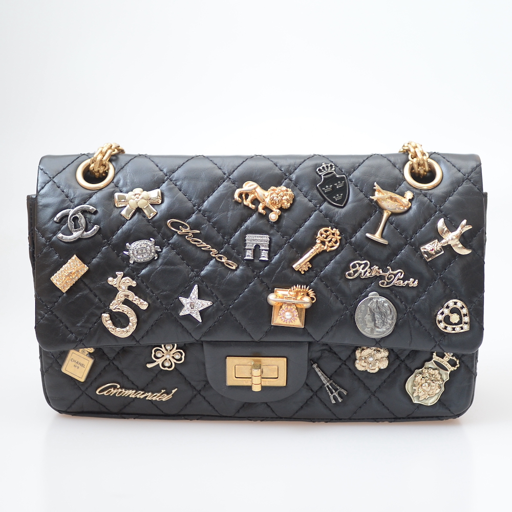シャネルの2.55チェーンショルダーをお買取させていただきました。今ではアイコンとなったココマークターンロック金具の前身となった2.55モデルは、現行品でも展開されている最初期のチェーンショルダーバッグです。ターンロック金具と比較するとやや人気は下がってしまいますが、今回ご依頼いただいたお品物はアイコンチャームが散りばめられた希少なモデルであることから高くご評価させていただきました。また状態に関しても非常に良好で、チャームが多いのものは一部欠けてしまったりする例も多いですが、新品に近しいほど美品である点も高くご評価させていただきました。やや製造は古いモデルではありましたが、シャネルの相場高騰なども考慮し405,000円にてお買取させていただきました。