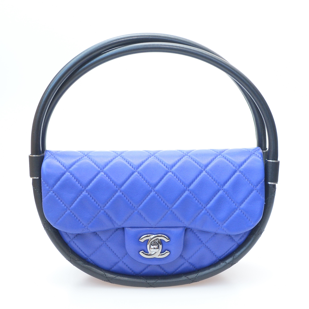 シャネルのフラフープ型ハンドバッグをお買取させていただきました。2012年のコレクションにて発表されたモデルで、シャネルの定番のターンロック金具のハンドバッグのハンドル部分にフラフープのようなデザインを組み合わせたユニークな品物となっています。中古市場にもあまり流通していない珍しい品物で、かつ状態も良好であったことから需要が高い品物とご評価させていただきました。カラーバリエーションもいくつかありますが、いずれのカラーでも状態が良いまま残っている品は少なく、近年シャネルの相場も高まっていることから25万円にてお買取させていただきました、