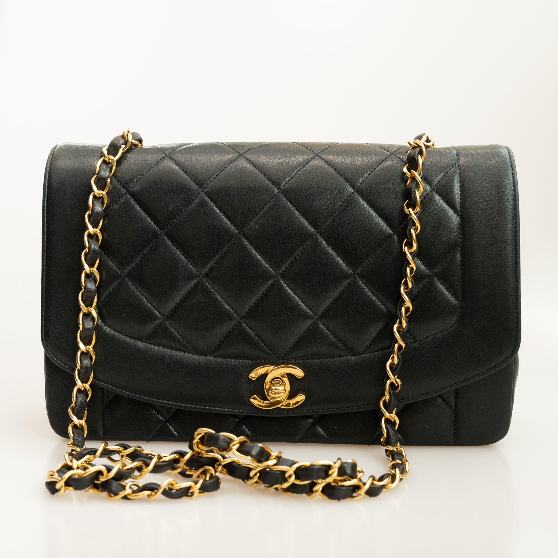 シャネルのダイアナチェーンショルダーをお買取させていただきました。ヴィンテージシャネルのチェーンショルダーの中でも定番のダブルフラップと同じくらい人気の高いダイアナモデルは、現在非常に高くお買取できるアイテムの一つとなっています。今回ご依頼いただいたお品物はブラックでラムスキンの定番品となっており、かなり古いアイテムながら比較的使用感が少なく状態も良好な点を高くご評価させていただきました。流通数も比較的多いアイテムではありますが、状態の良い品物はかなり減ってきており相場も上昇傾向にあります。当時シャネルで購入している方であれば、多少ご使用感が見られても買った金額以上で売れるプレミアアイテムとなっています。