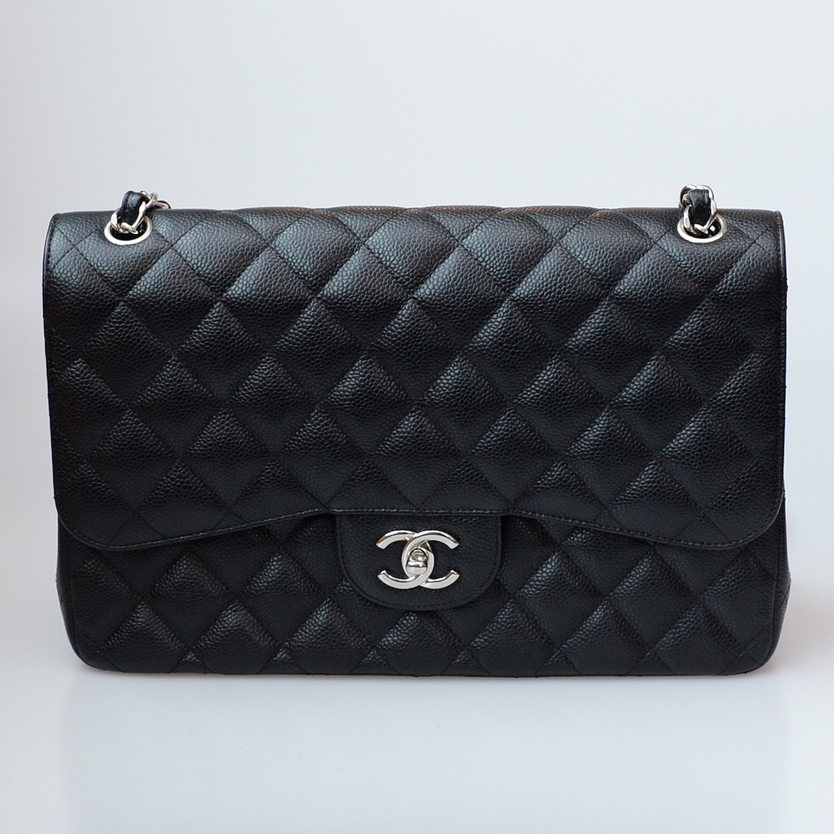 ダブルフラップ チェーンショルダー30(ブラック・キャビア)