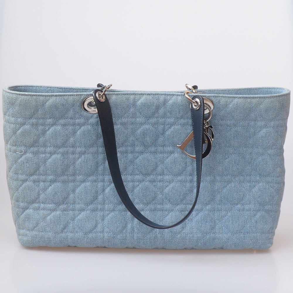 ディオールのカナージュトートバッグをお買取させていただきました。やや古めのディオールのバッグの中でも、現行レディディオールと同じ「カナージュライン」の品物は中古需要も高いです。かつ持ち手がチェーンとなっているトートバッグなどは品物によって10万円近い金額でお買取できる場合もあります。今回ご依頼いただいたお品物は持ち手が少しだけチェーンになっているモデルで、レザー素材ではなくデニム素材の流通数が少ない品と判断させていただきました。やや使用感が見られた点とレザー素材ではない点などを考慮し3万円にてお買取させていただきました。