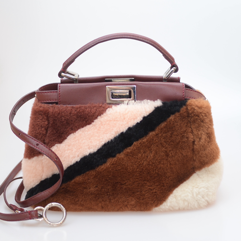 フェンディのミニピーカブーをお買取させていただきました。スムースレザーやセレリアレザーでの展開がメインのピーカブーですが、今回ご依頼いただいたのはムートンファーがあしらわれた珍しいお品物となります。ピーカブーは近年サイズも増えていますが、古くからある定番サイズとしては「マイクロ(プチ)」「ミニ(スモール)」「ミディアム」の三種がメインです。中古市場においてはミニサイズのモデルが人気ですが、ファー素材のモデルに関しては、いずれのバッグでもお値段がつきづらい傾向にあり、使用感等も見られたことから7万円にてお買取させていただきました。