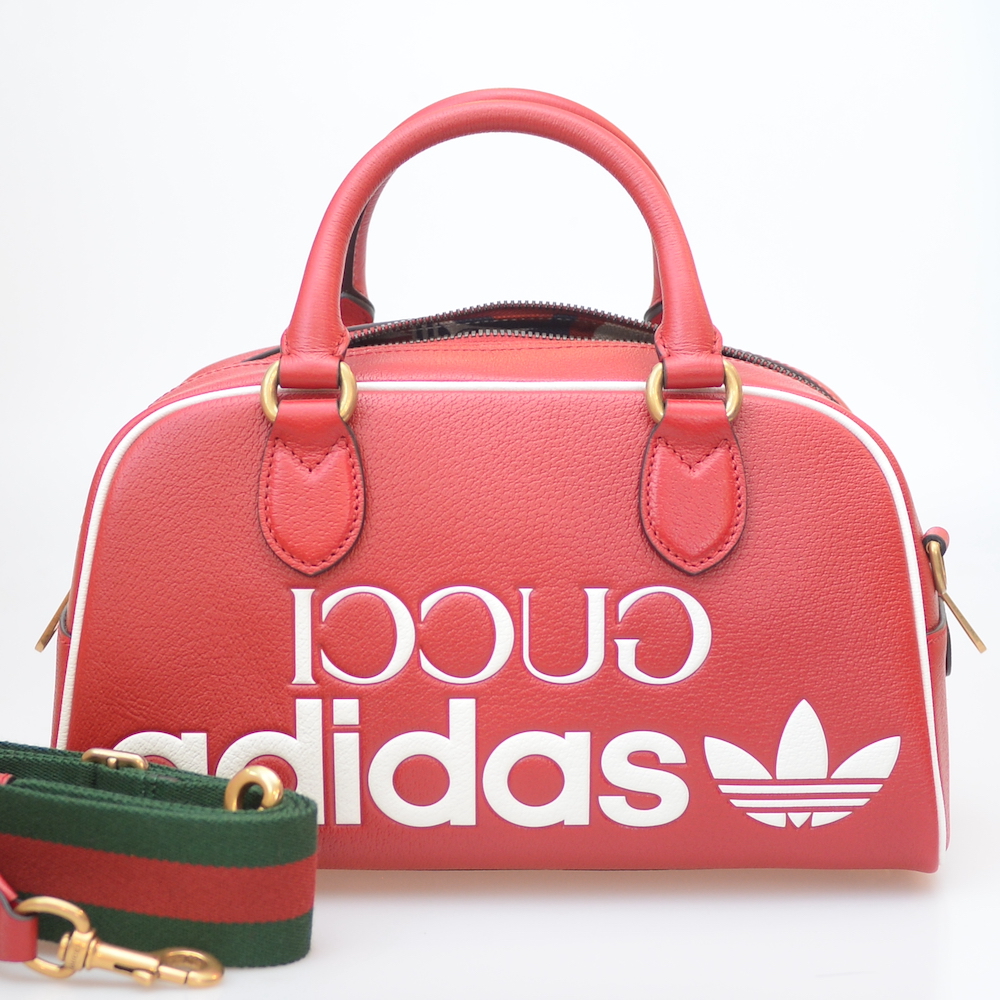 グッチのミニダッフルバッグをお買取させていただきました。2022年に登場したアディダスとのコラボモデルの一つです。GGクリスタルのモデルとオールレザーのモデルが二種類展開されていましたが、オールレザーのレッドのお品物となります。今回ご依頼いただいたお品物は新品でのお査定でしたので、最新の中古相場を考慮し145,000円にてお買取させていただきました。