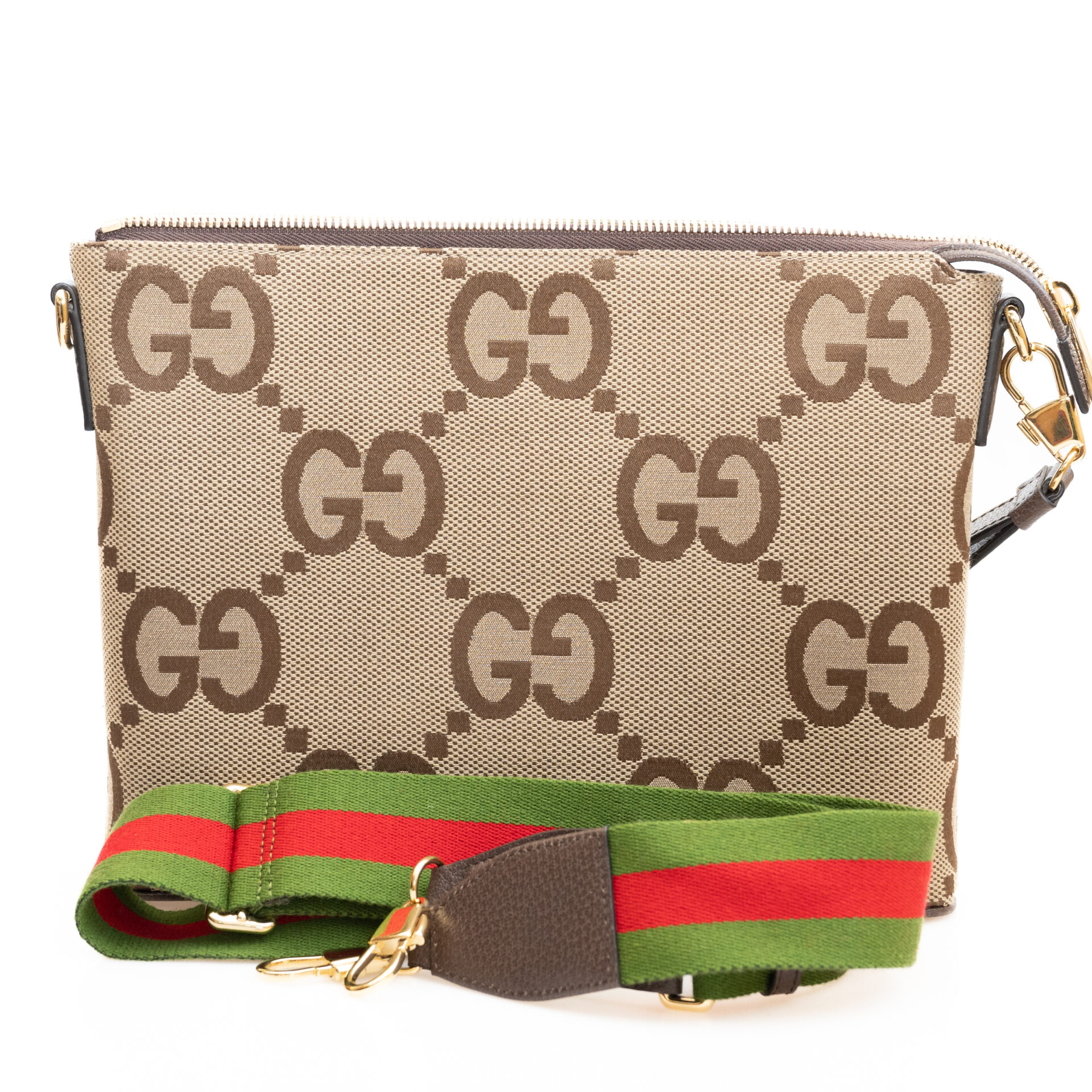 グッチのGGジャンボメッセンジャーバッグをお買取させていただきました。シェリーラインのショルダーストラップが付属していて肩がけのメッセンジャーバッグとして使用できる他、ショルダーストラップを外してハンドストラップのみのクラッチバッグ、セカンドバッグとした利用もできる2WAYモデルとなっています。GGジャンボもグッチの新しいアイコンとして中古市場での人気も高く、現行品としても展開されているモデルのため、グッチのバッグの中ではリセールバリューの高いモデルとなっています。状態も傷や汚れがほとんどなく、最新の相場をもとに8万円にてお買取させていただきました。