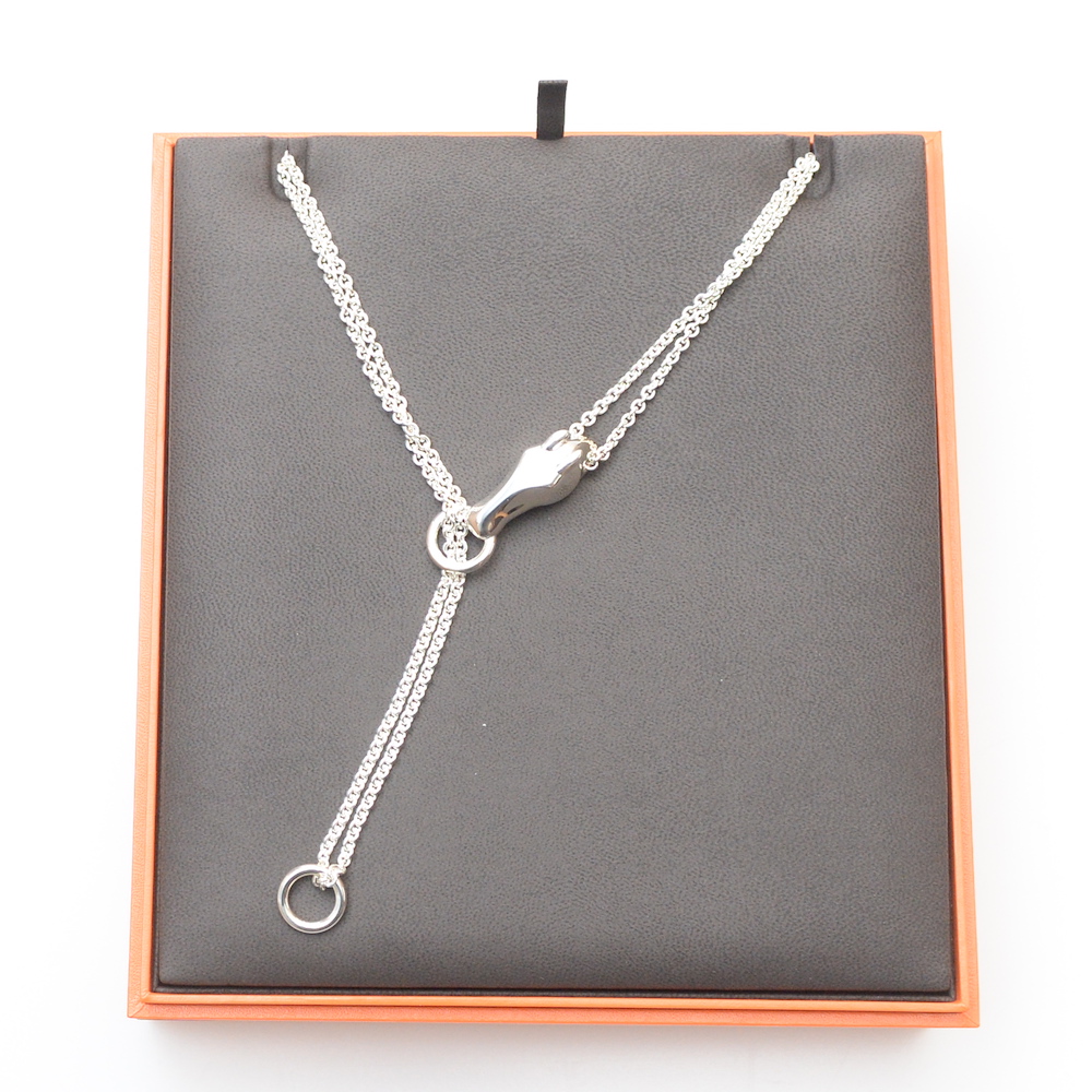 エルメスのギャロップネックレスをお買取させていただきました。2連チェーンになっている珍しいモデルで、トップは馬のモチーフとなっているデザインです。通常のネックレスよりチェーンも長く幅広く用いることができるネックレスとなっております。今回ご依頼いただいたお品物は新品でのご評価をさせていただき、相場等を考慮し9万円にてお買取させていただきました。