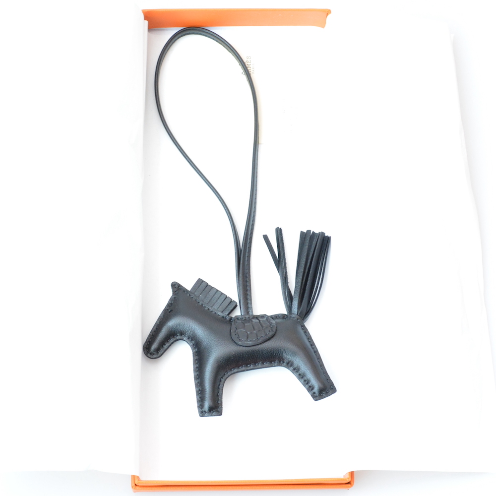エルメスのロデオチャームPMをお買取させていただきました。こちらのモデルは馬の鞍部分がアリゲーター素材になっているロデオタッチのお品物です。通常のオールレザーの品物よりも希少価値が高く買取相場も若干高い傾向にあります。色もブラックの単色で需要が高いお品物ではありますが、近年ロデオチャームは中古市場への流通数が非常に多くなっていて、相場が下がり気味となっています。タッチモデルも一時期は10万円以上でお買取が可能でしたが、PMサイズに関しては現状のお買取価格では85,000円となっております。