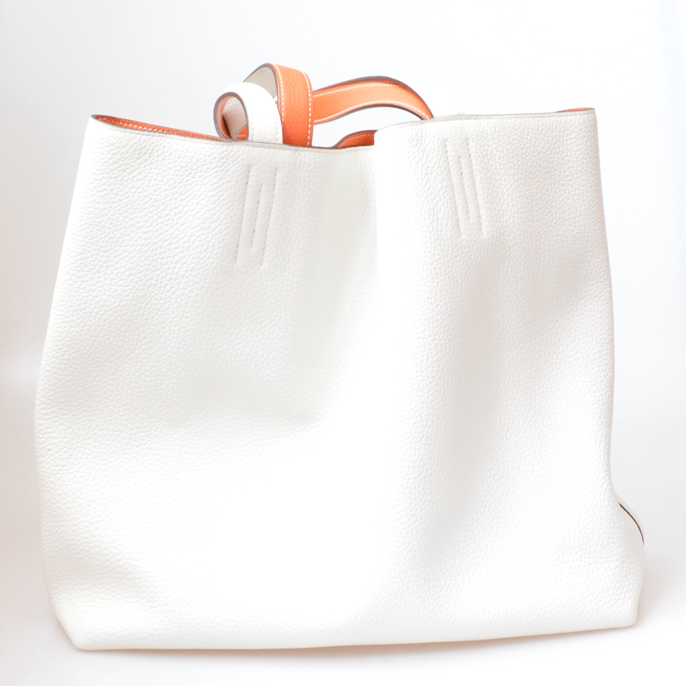 エルメスのドゥブルセンス36をお買取させていただきました。オールレザーのシンプルなトートバッグですが、リバーシブルでの利用ができるため、買取査定においては表と裏のカラーがどんな色なのかが大きく関わってきます。今回ご依頼いただいたお品物はホワイトとオレンジの組み合わせで、どちらも薄めのカラーリングであることから、中古市場での人気としてはやや低いお品物と判断せざるを得ませんでした。状態に関してはやや小傷等は見られましたが、全体的には美品のABランクとご評価させていただいております。