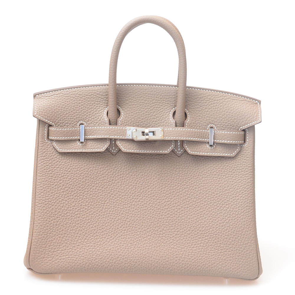 エルメスのバーキン25をお買取させていただきました。ここ一年くらいの間にバーキン25は買取相場が非常に高騰していて、それまで定番だったバーキン30よりも買取相場が高くなっています。今回ご依頼いただいたお品物は、バーキン25の中でも特に人気の高いエトゥープとトゴといった組み合わせで、ほぼご使用になられていないような状態とご評価させていただきました。現在の相場ですとバーキン25に関しては、中古品でも人気の色素材であれば定価以上でのお買取が可能なケースも多く、今もっとも高いバーキンとなっています。