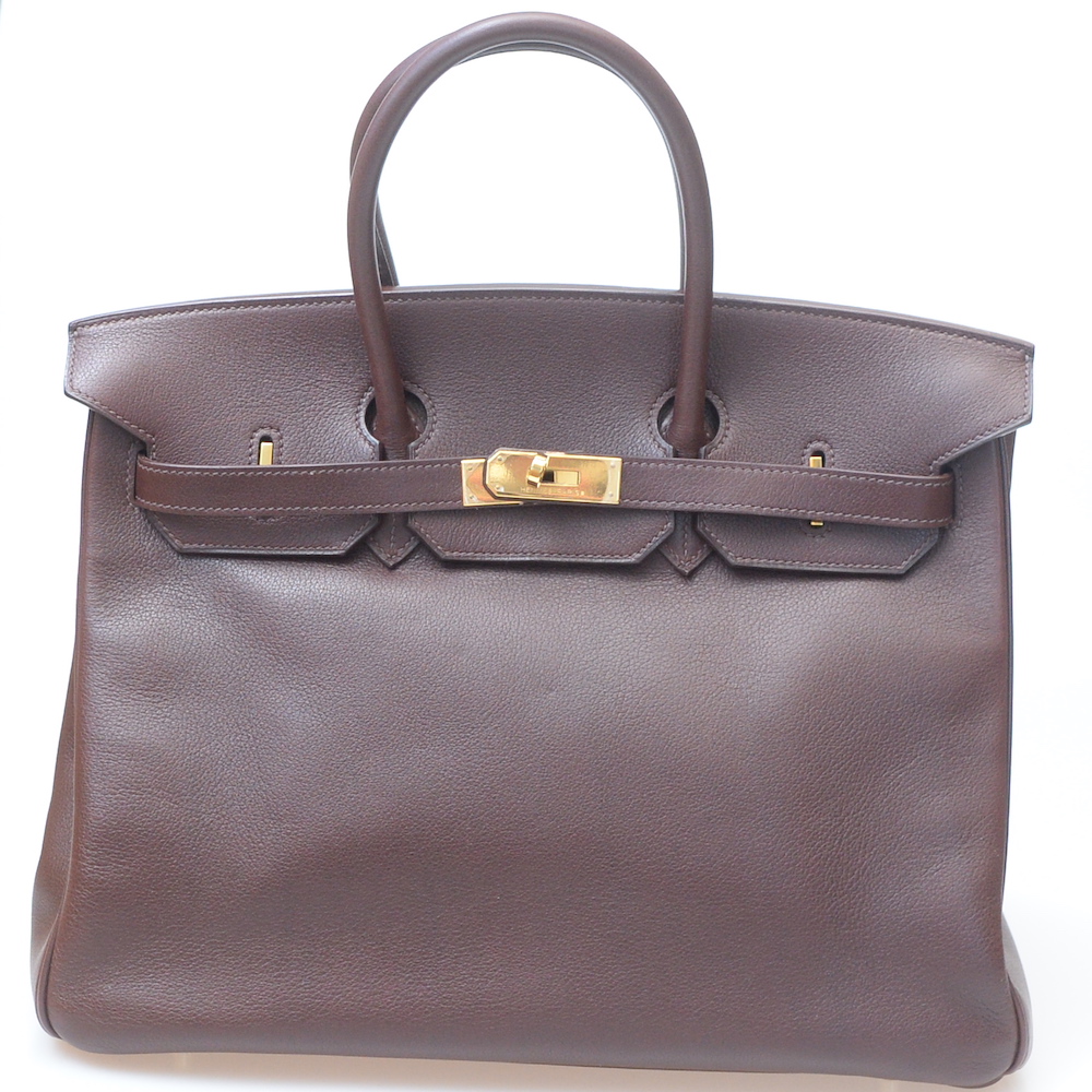 エルメスのバーキン35をお買取させていただきました。ハバナというダークブラウンの色味のお品物で、ショコラ、カカオ、エベンヌなど同系色の展開も多いです。やや古めのお品物ではありましたが、状態もかなり良好で、保管時についたと思わしきハンドルの癖以外には状態に関するマイナス点はありませんでした。またこの年代のバーキンには珍しい素材がエヴァーカラーのバーキンでした。ダークブラウン系のバーキンはブラックやゴールドなどの定番色と比較するとやや人気が低く、その点はマイナスとなってしまいますが、相場を考慮し65万円にてお買取させていただきました。