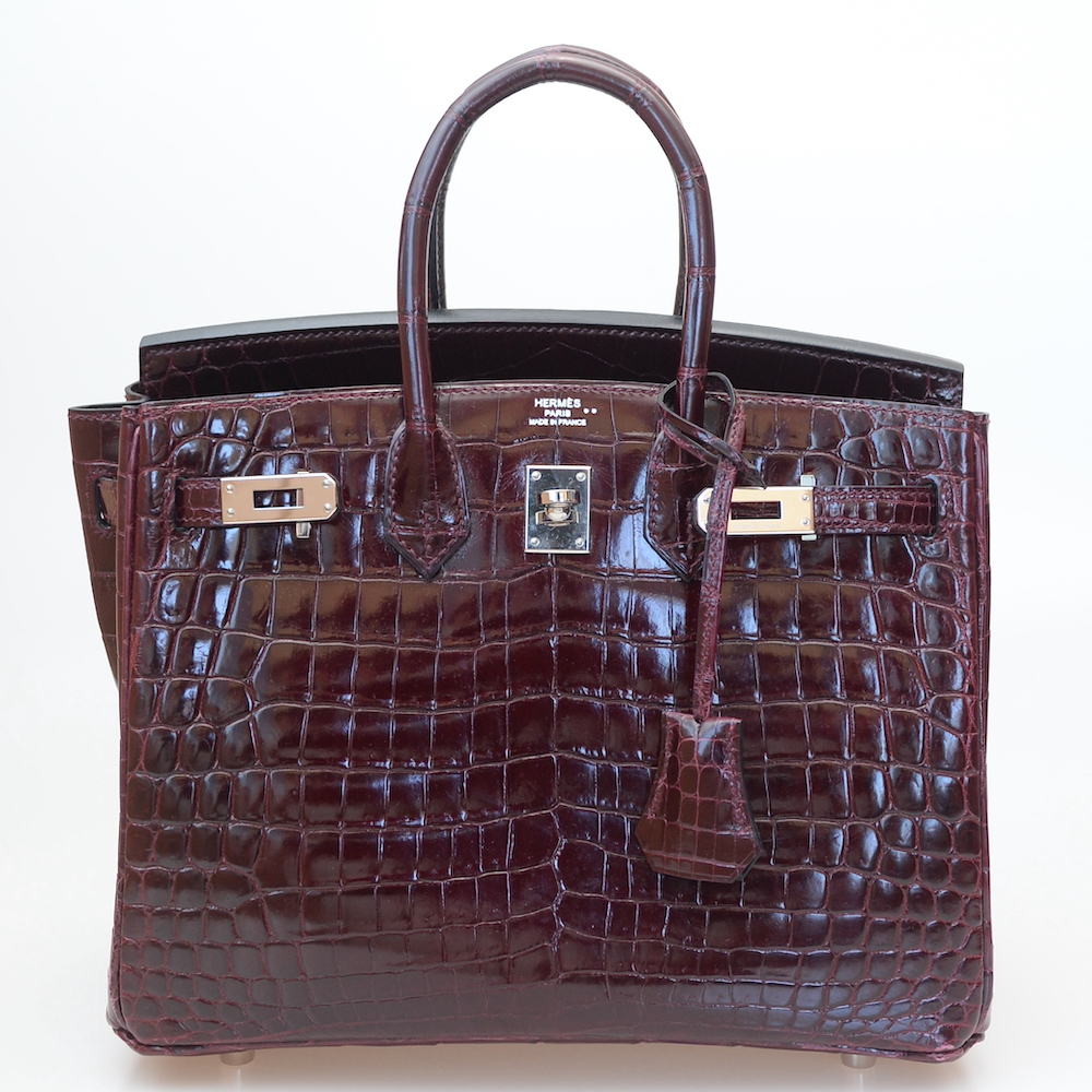 エルメスのバーキン25クロコ素材のモデルをお買取させていただきました。ワインレッド系のカラーのお品物でニロティカス素材を用いた最高級のバーキンとご評価させていただきました。使用感についてはやや型崩れや角スレなどが見られましたが、中古品としては許容できる範囲の傷や汚れと判断させていただきABランクでのご評価となりました。ニロティカス素材に関しては、ポロサスと比較するとやや相場は下がるものの、アリゲーターと比較すると若干相場も高く、クロコ素材の中での人気としては真ん中に位置します。近年はマット仕様よりもツヤのあるシャインの方が需要も高いため、最新の相場やお品物の状態等を考慮し320万円にてお買取させていただきました。