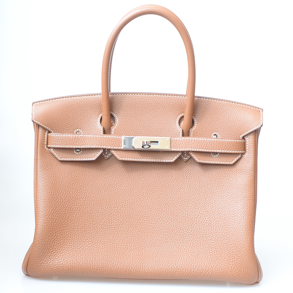 エルメスのバーキン30をお買取させていただきました。定番のゴールドカラーのトゴ素材のモデルで、シルバー金具の仕様のためゴールドxゴールドと呼ばれる組み合わせよりは人気は下がりますが、定番品として中古市場でも需要が高いお品物です。今回ご依頼いただいたお品物は製造も新しく多少のご使用感は見られましたが、状態に関しても高くご評価させていただきました。もう少し傷や汚れが見られると定価以上でのご評価が難しいケースもございますが、バーキン30以下のサイズで定番色のモデルでしたら、多少ご使用感があっても購入時の価格より高値でお買取できるケースが増えています。