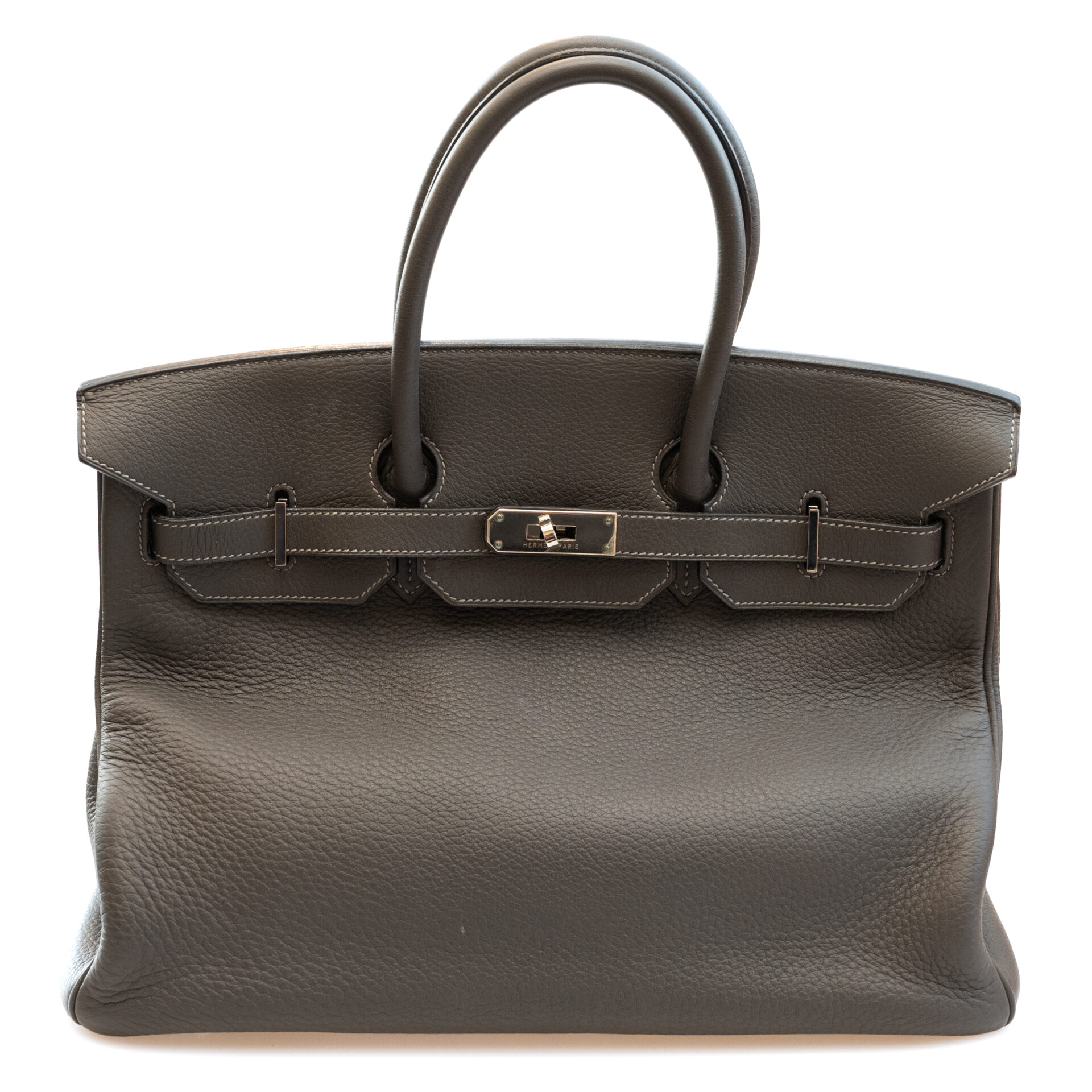 エルメスのバーキン35をお買取させていただきました。グレー系の人気色「グラファイト」のお品物で近年はあまり生産されていないカラーではありますが、ダーク系のグレーはエルメスのカラーの中でも展開が少なく中古市場でも人気の高い色となっています。今回ご依頼いただいたお品物は製造年もやや古いモデルではありますが、全体的に傷等は少ないとご評価させていただきました。ただトリヨンクレマンス素材に多くみられる形崩れであったり、ハンドルの劣化がややみられたためそういった点は査定でマイナスとなってしまった項目です。現在バーキン35は他サイズと比較しお値段がつきづらい傾向にはありますが、人気の高いカラーである点をご評価させていただき105万円にてお買取させていただきました。