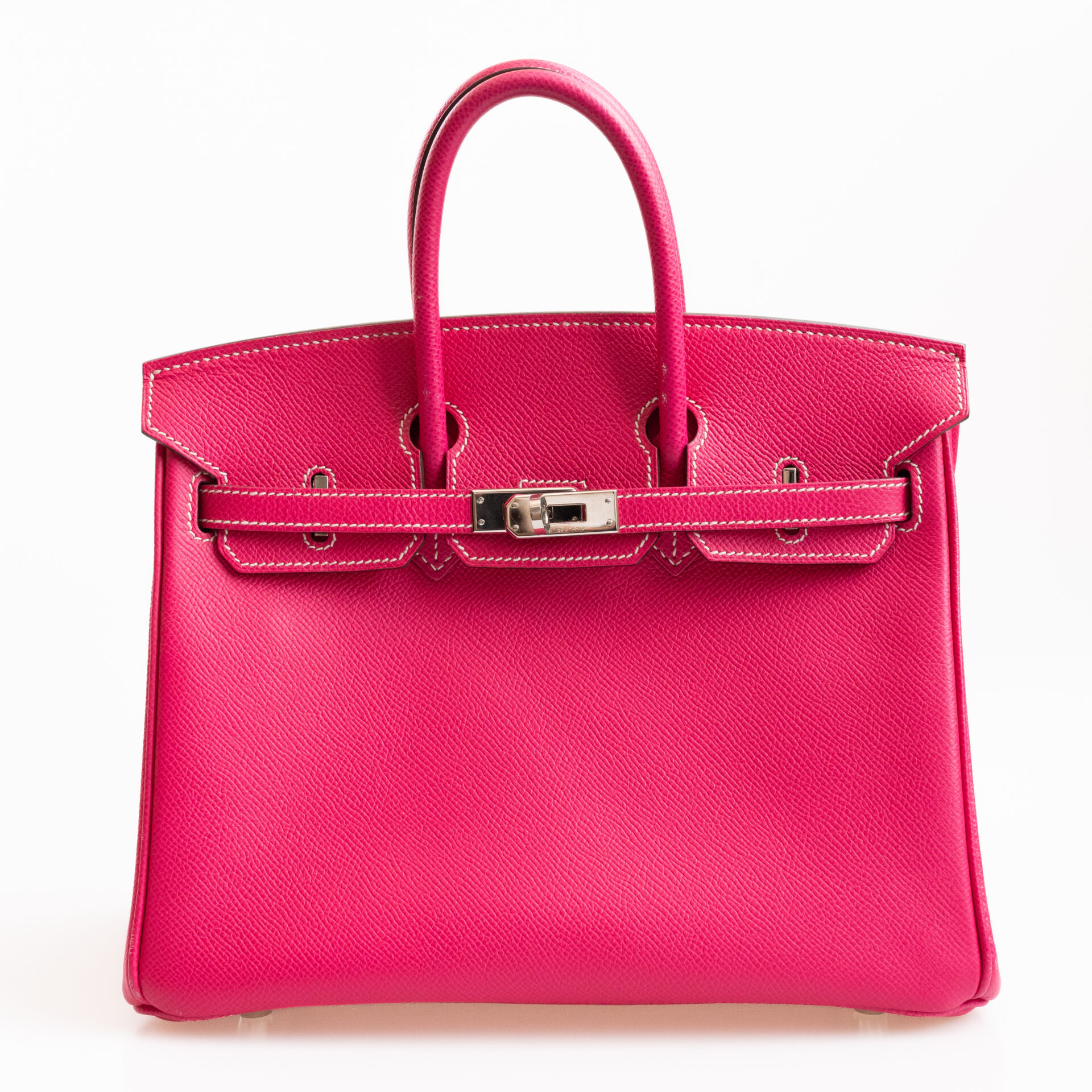 エルメスのバーキン25をお買取させていただきました。ローズテリアンのカラーのモデルでかなり鮮やかなピンク系のカラーです。ピンク系のカラーはいっときよりは人気が下がってしまいましたが、ビビットなカラーの中では比較的市場での人気が高いと言えると思います。今回ご依頼いただいたお品物は角擦れなども多少見られましたが、いずれも軽微なものとして総合的にABでのご評価をさせていただきました。エプソン素材のモデルに関しては、トゴやトリヨンクレマンスと比較し傷が目立ちやすく状態によって買取価格が下がりやすいという傾向があります。最新の相場や製造年などを考慮し150万円にてお買取させていただきました。