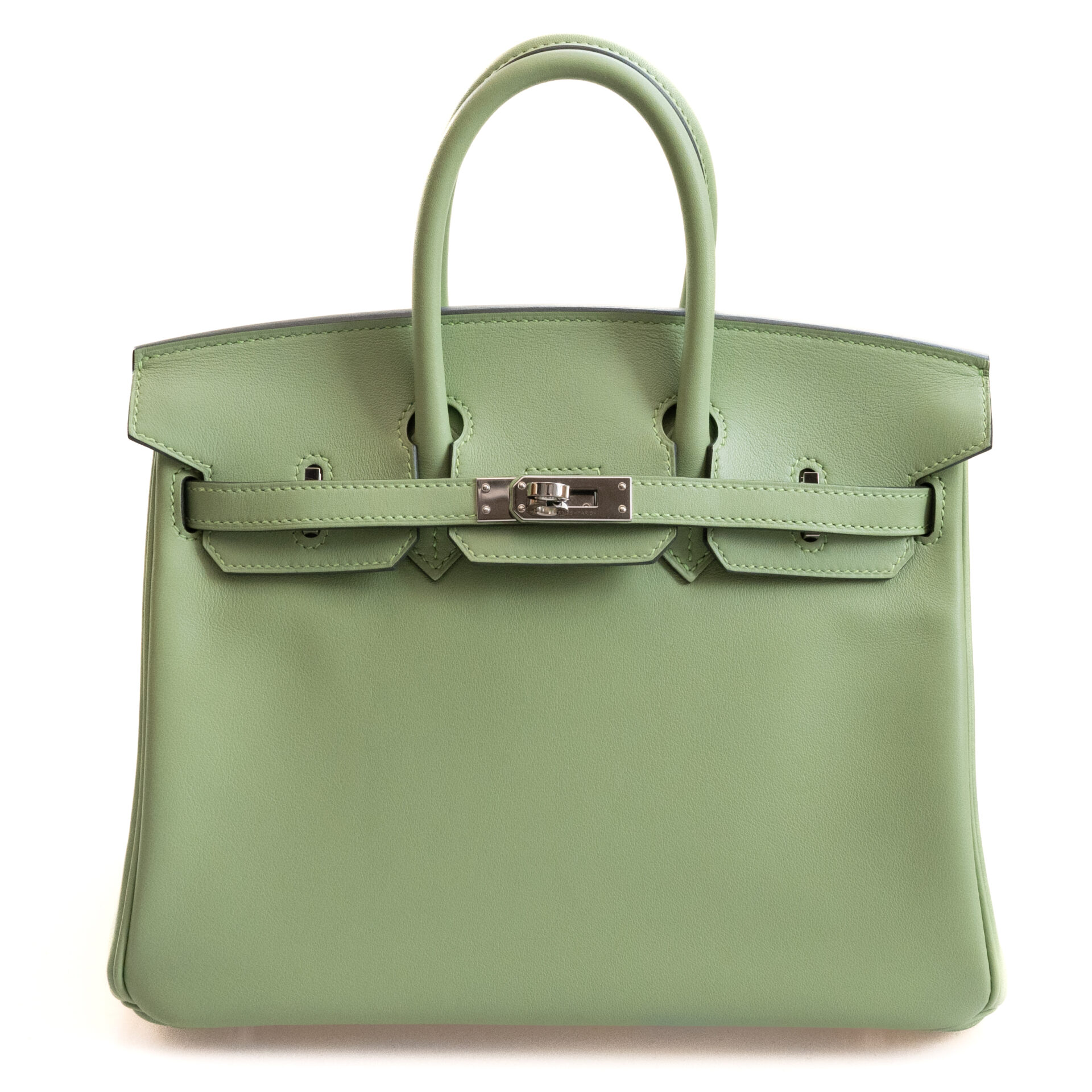エルメスのバーキン25ヴェールクリケットをお買取させていただきました。2020SSの新色として発表された「ヴェールクリケット」は今までエルメスであまり展開されていなかった明るいグリーン系のカラーということで話題になりました。特に海外での人気が高く発売当時は中古相場も、定番色と同じくらい高水準な人気カラーでした。しかしながら流通数もある程度増えてきたあとは、やや人気は下がり気味となっています。今回ご依頼いただいたお品物は中古品ではありながら、ご使用感もほとんど見られずAランクとご評価させていただきました。やや人気が下がってきたとはいえ、多色と比べると流通数の少ない人気カラーの一つであることには変わりありません。人気の25cmサイズである点なども考慮し190万円にてお買取させていただきました。