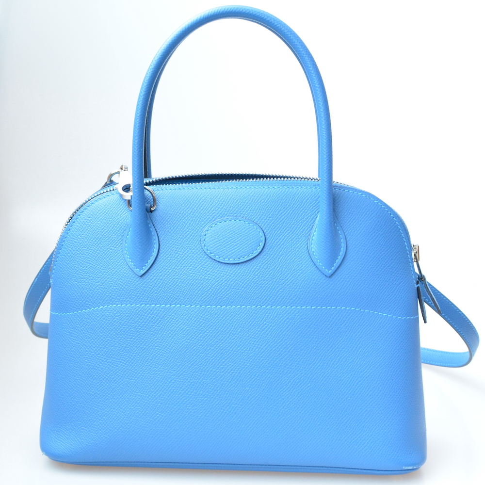 エルメスのボリード27をお買取させていただきました。ボリードは近年通常モデルとは異なるボリード1923の生産数が増えていて、ボリード27、ボリード31といった定番モデルの生産数が減り中古市場の流通数も減少傾向にあるため、買取相場もやや高騰しています。今回ご依頼いただいたお品物はボリードの中でももっとも人気の高い27cmサイズのお品物でかつ人気のエプソン素材のモデルです。ブルー系のカラーはエルメスの中でもやや人気が低めとなっていますが、ミコノスという新しめのカラーという点はブルー系の中では高いご評価となっております。やや傷等が見られるお品物ではありますが、最新の相場を元に53万円にてお買取させていただきました。