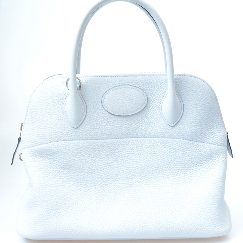 エルメスのボリード31をお買取させていただきました。ブルーブリュムという薄めの白に近いブルー系の色味で、近年はホワイト系の相場が上昇していることからこういった薄いカラーも人気が高まっています。トリヨンクレマンスのボリードは年々生産数も減っていると言われていて、ボリード27と同じくらい高い相場となっています。ただし定価がボリード31の方が高いため買取率は低めです。今回ご依頼いただいたお品物は状態もとても良好で使用感がほぼない美品とご評価させていただいております。