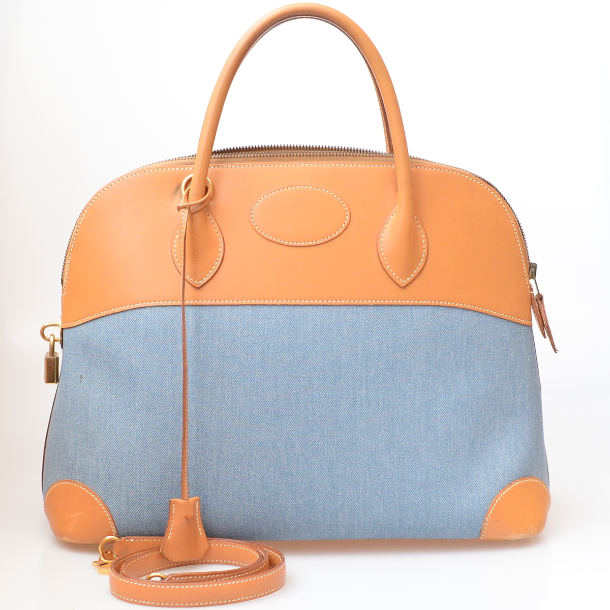 ボリード27のデニム生地を用いたモデルをお買取させていただきました。エルメスのヴィンテージ品はトワルアッシュなどキャンバス生地のものをはじめ、今回ご依頼いただいたトワルジーンなど異素材のモデルも数多くあります。こうした珍しいモデルは、通常のレザー素材と比較しても高騰していて、状態の良い品物であればかなり高額でお買取できるケースも存在します。今回ご依頼いただいたお品物も非常に希少なモデルではありましたが、背面のトワルジーン部分に目立つシミ汚れがあり、かなり年数が経っていることから修復できないと判断させていただき、その点は大きく減額の対象となってしまいました。