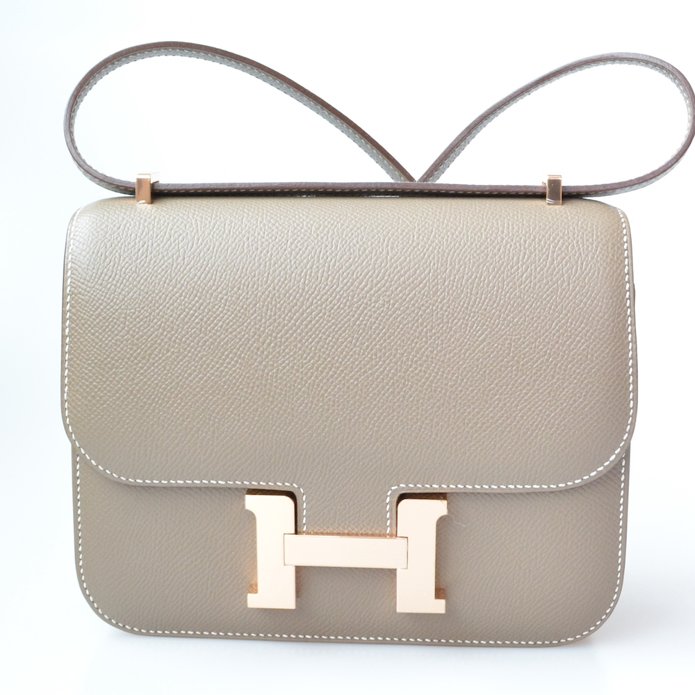 エルメスのコンスタンス3ミニをお買取させていただきました。今回ご依頼いただいたお品物は人気の定番色「エトゥープ」でピンクゴールド金具のモデルです。限定品などではないコンスタンスミニの中ではもっとも人気の高い組み合わせとも言える、中古市場でも非常に需要が高いお品物とご評価させていただきました。コンスタンスミニは近年正規店での購入が難しくなりつつあり、人気のモデルに関しては定価を大きく上回る金額でのお買取も可能となっています。状態に関しても未使用品とご評価できる申し分のない状態でしたので、定価を大きく上回り155万円にてお買取させていただきました。