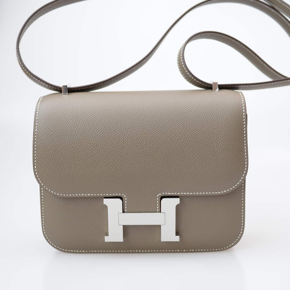 エルメスの定番バッグの一つであるコンスタンスは18cmのミニサイズがより人気の傾向にあります。今回のお品物のエトゥープやブラックのコンスタンスミニは人気が高く、傷が目立ちにくいエプソン素材であることも高くご評価させていただきました。コンスタンスも近年流通数が少なくなっているため、人気の色のお品物は買取相場も高騰しています。
