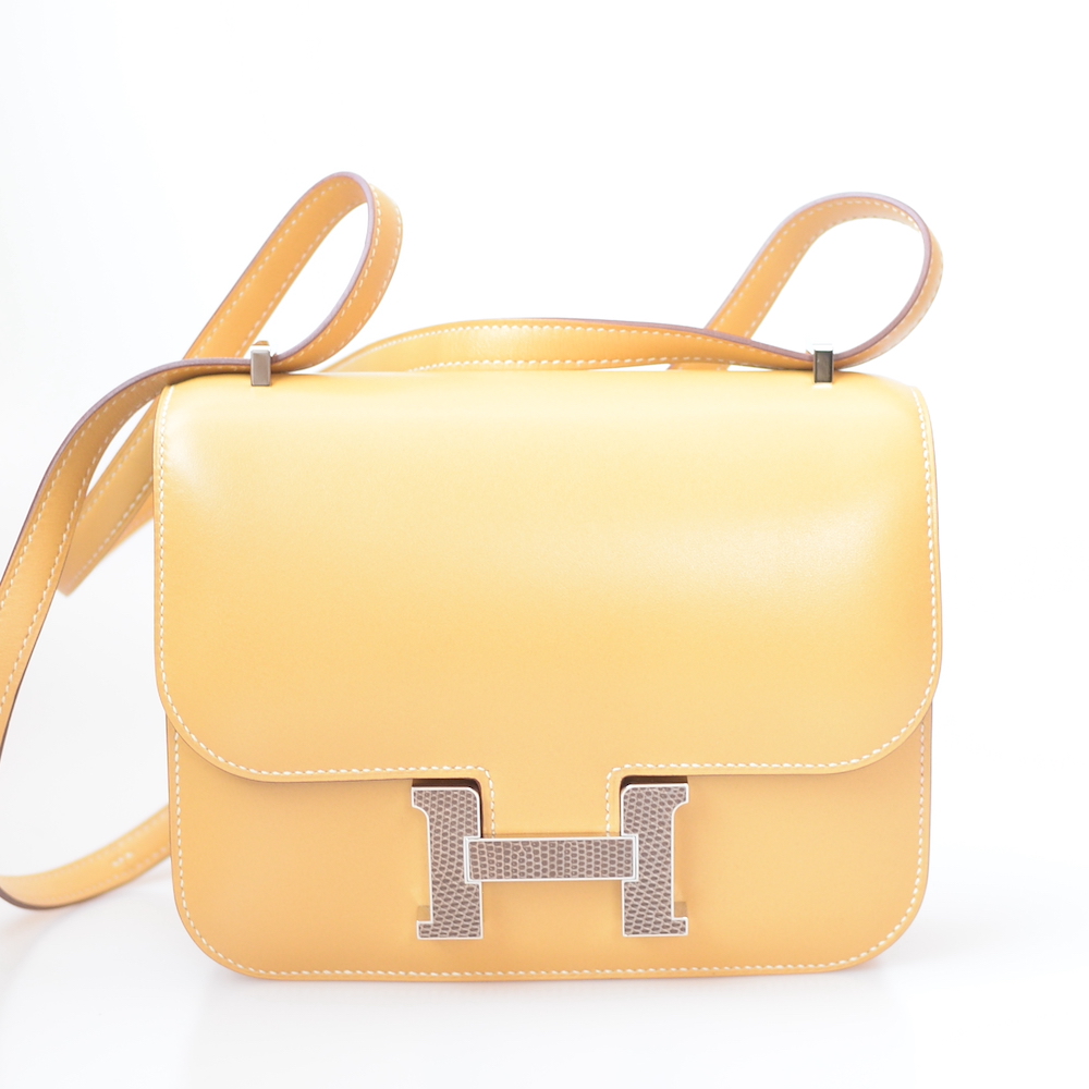 エルメスのコンスタンス3ミニをお買取させていただきました。パイユというイエロー系のカラーのお品物で色自体もあまり流通数が少なく、金具部分にリザード素材を用いたやや珍しいお品物となります。イエロー系のカラーは近年ジョーヌプッサンなど明るいキャンディー系のカラーは海外での需要が高く買取相場も上昇している傾向にあります。しかしパイユに関しては、クリーム系の濃いイエローということもあり、色に関してはやや人気が低い部類と判断させていただきました。素材に使われているタデラクトはボックスカーフと似た硬めの素材で、コンスタンスで用いられるエヴァーカラーやスイフトなどよりは人気が高く、状態も非常に良好でしたが、製造がやや古いことも考慮し105万円にてお買取させていただきました。