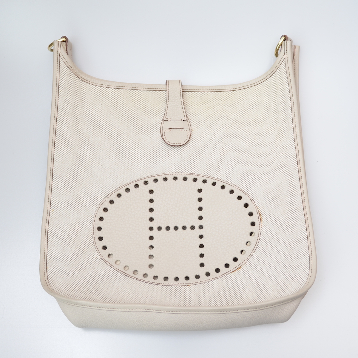 エヴリン1PMサイズのトワルアッシュを使用した少し珍しいモデルとなります。使用感は少ないものの、トワルアッシュ特有の接着剤のシミ等が見受けられましたので、やや減額とさせていただきました。しかしながらお色味は現在人気のグレー系ということもあり、最大限ご評価させていただきご成約いただきました。エヴリンは初期のエヴリン1、背面にポケットが追加されたエヴリン2、それに加えてショルダーストラップの長さ調節機能が追加されたエヴリン3で大きく買取相場も異なりますので、ご注意くださいませ。