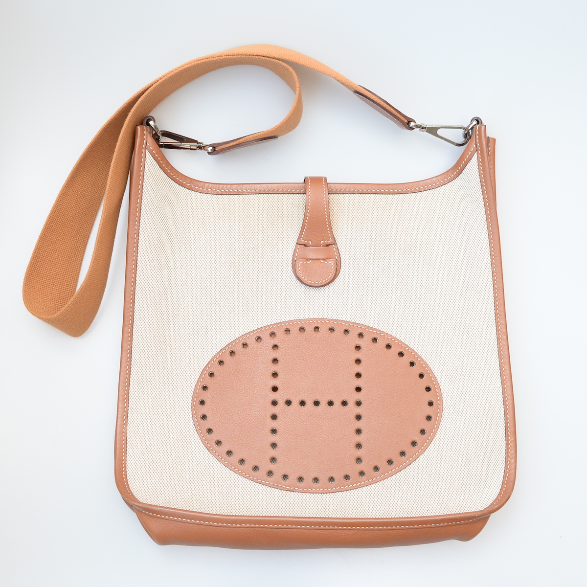 エヴリンⅠ PMのトワルアッシュモデルをお買取させていただきました。エルメスのキャンバス素材のバッグは、以前はレザー製の品と比較して買取相場も下がってしまう傾向にありましたが、最近ではヴィンテージ品の人気も高く現行品としてはほぼ販売されていないトワルアッシュモデルのバッグも全体的に買取相場が高騰してきています。今回ご依頼いただいた品物は、製造は古いものの状態が良く75,000円にてお買取させていただきました。エヴリンなどエルメスの中では定価格帯と呼ばれるバッグに関しては、状態が良い分には値段が付きやすいものの、状態が悪い品物だと数万円程度にまで買取価格も下がってしまうためご注意ください。