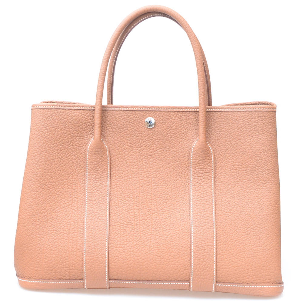 エルメスのガーデンパーティPM新品のお品物をお買取させていただきました。ガーデンパーティの中でも一番定番のサイズがPMサイズ、横幅36cmのお品物です。ガーデンパーティも年々少しずつではありますが正規店での入手が難しくなっていて、新品中古問わず相場が高騰している傾向にあります。より一般的なのはトワルアッシュなど布製の素材を組み合わせたモデルですが、オールレザーの品物はより高価で希少価値が高いです。今回ご依頼いただいたお品物は新品でのご評価をさせていただき、定番で人気の高いゴールドであることを高くご評価させていただきました。定価も上昇しているため定価以上でのお買取は難しいとはいえ、近年かなり買取率が上がっています。