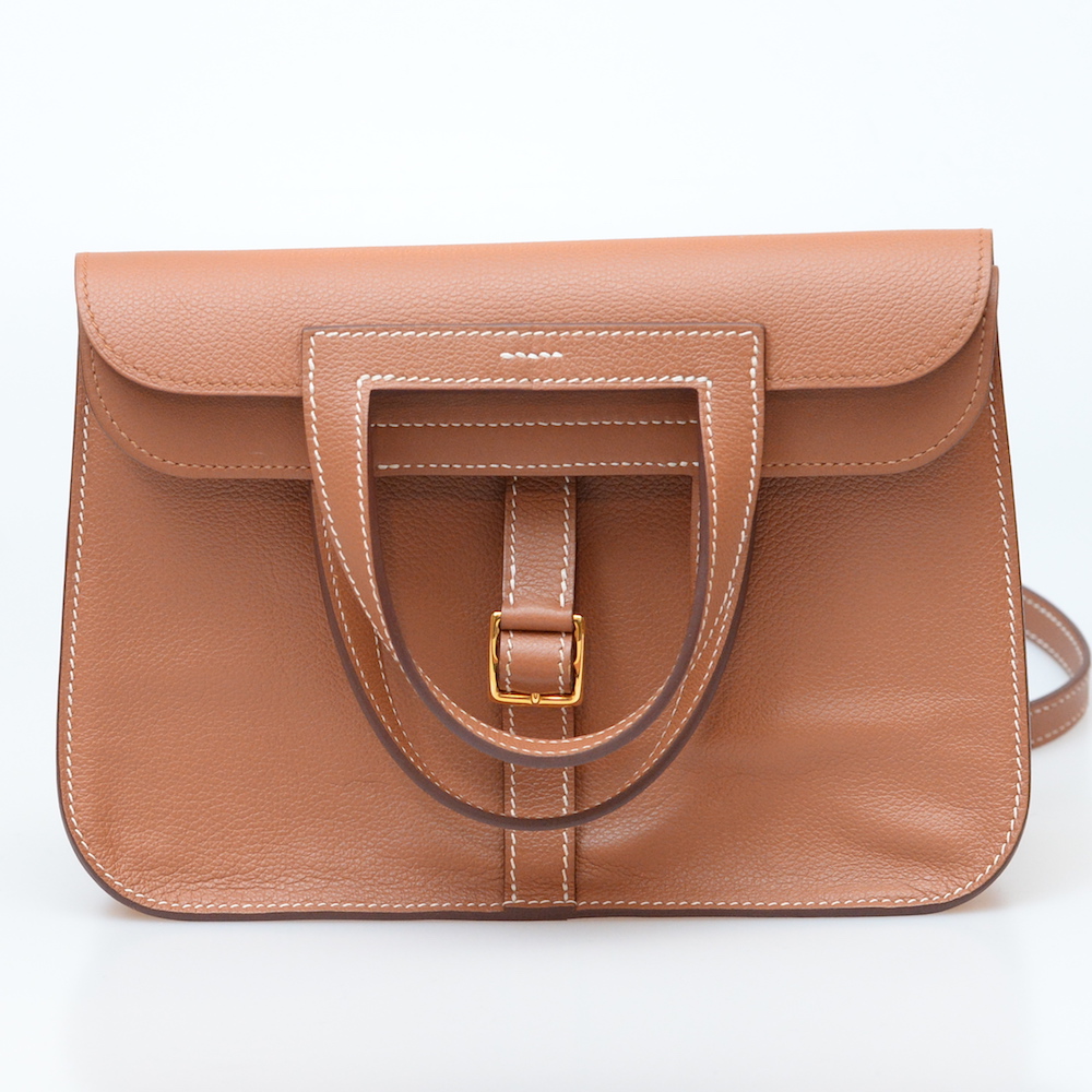 エルメスのアルザン25をお買取させていただきました。アルザン25は比較的新しく展開されたサイズで中古品の流通数がまだ少なく、アルザンの中でももっとも高値が付きやすいサイズとなっております。今回ご依頼いただいたお品物はエバーカラーの素材のモデルで、通常スイフトとトリヨンクレマンスでしか展開がなく珍しいお品物とご評価させていただきました。ゴールドのカラーでゴールド金具である点も高くご評価させていただきました。使用感は少ないものの、正面にエバーカラーなど柔らかい素材特有のシワが入ってしまっていた点のみマイナスなポイントとなっております。