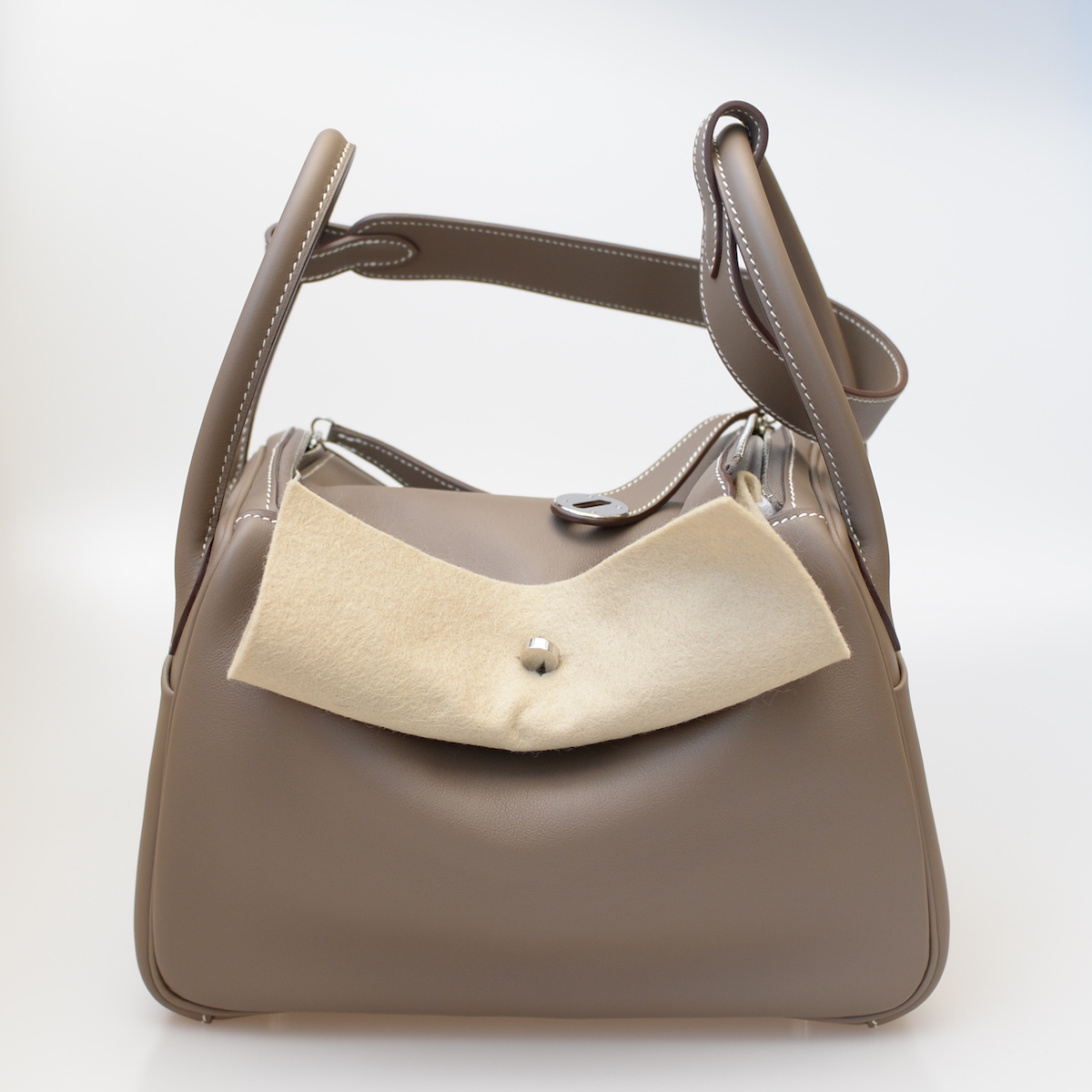 リンディ26をお買取させていただきました。リンディはエルメスのバッグの中では、定価に対してやや値段が付きづらい傾向にあります。エルメスの人気モデルのバッグであれば新品買取が定価以上になるケースも多いですが、リンディで定価以上でお買取できるのは、もっとも小さい「リンディ ミニ」というサイズのみとなります。今回ご依頼いただいたお品物はリンディ26とミニの次に小さめのサイズである点や、お色がエトゥープという一番人気のカラーであることから、相場を元に最大限ご評価させていただきました。