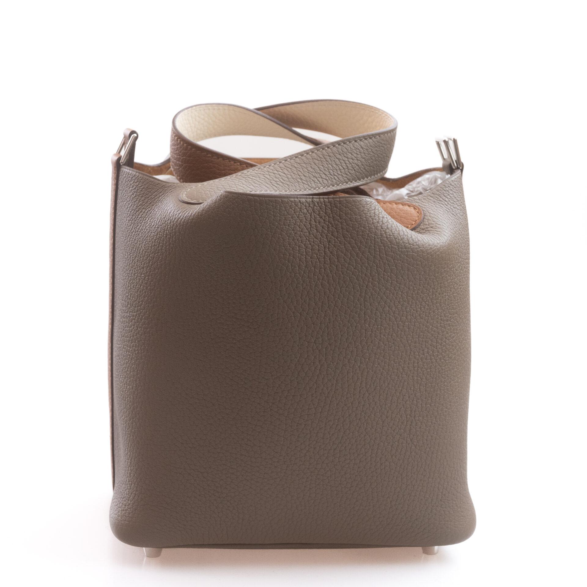 エルメスのピコタンロックPMカザックをお買取させていただきました。カザックは3色使いのアイテムで色の組み合わせによって中古市場での人気が大きく変わる傾向にあります。今回ご依頼いただいたお品物は本体カラーに「エトゥープ」と「ゴールド」、ハンドル内側部分に「ナタ」という、全て人気カラーを組み合わせたアイテムである点を高くご評価させていただきました。ピコタンロックの相場はもっとも高い時期と比べるとやや下がってきている傾向にはございますが、人気の高いモデルで状態が良い点を高くご評価させていただき、45万円にてお買取させていただきました。