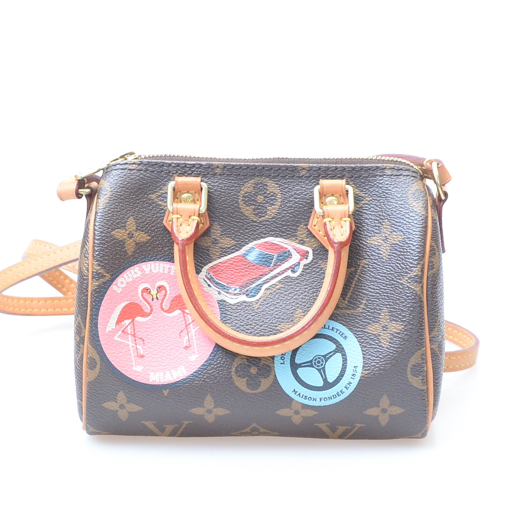 ルイヴィトンのナノスピーディをお買取させていただきました。ナノスピーディは登場以来品薄状態が続いていて、現在も正規店での購入が難しいモデルとなっています。定価も上昇しているため、中古相場もここ数年でだいぶ高騰している人気の品となっています。今回ご依頼いただいたお品物は通常のモノグラムラインではなくステッカーと呼ばれる限定モデルとなっており、通常の品物より高くご評価させていただいております。状態に関しては、ややヌメ焼け等は見られたものの、その他の部分は使用感も少ない美品だと判断させていただき、12万円にてお買取させていただきました。