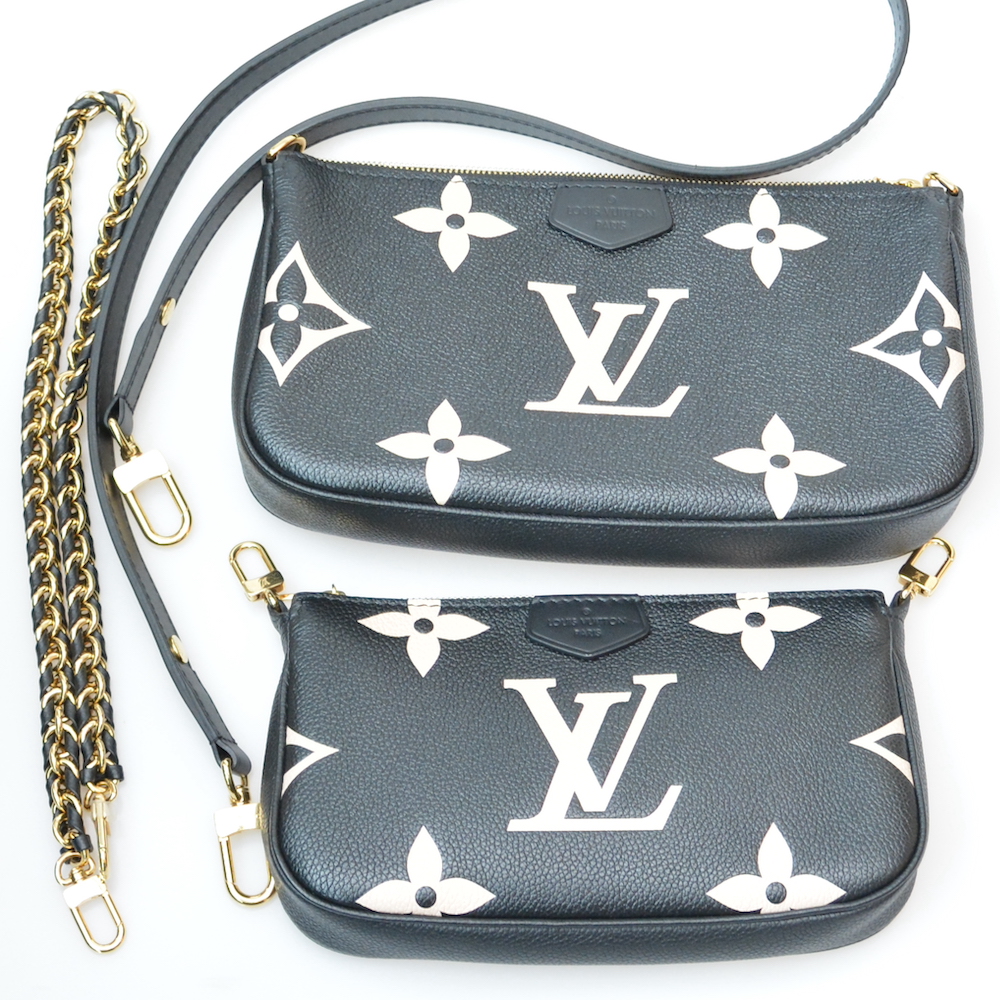 ルイヴィトンのミルティ・ポシェット・アクセソワールをお買取させていただきました。ポシェットアクセソワールをモチーフ元にショルダーバッグとして改良されたこのモデルは、比較的最新登場した品物ではありますが、登場した当初から人気が高まり中古市場でも需要の高いお品物となっています。今ではモノグラムライン以外のアンプラントなど様々なラインでラインナップされていて、色や柄によって人気も異なる傾向にあります。今回ご依頼いただいたのはアンプラントレザーを使用したマルチカラーモデルで、かなり人気の高いモデルの一つとご評価させていただきました。若干の使用感は見られたものの、大きな傷等もない美品と判断させていただき21万円にてお買取させていただきました。