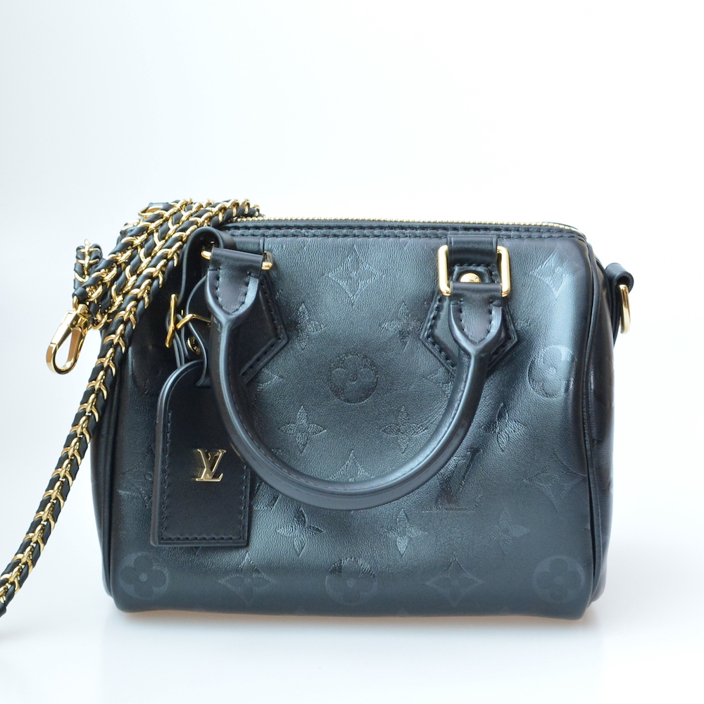 ルイヴィトンのスピーディBBをお買取させていただきました。幅およそ20cmの小型のスピーディで、オールレザーで型押しのモノグラムラインのモデルとなります。新しめのモデルではありますが既に廃盤となっているため、中古市場にほぼ流通していないお品物です。今回ご依頼いただいたお品物は若干の使用感が見られましたが、いずれも気にならない程度の小傷と判断させていただきAランクとご評価させていただいております。